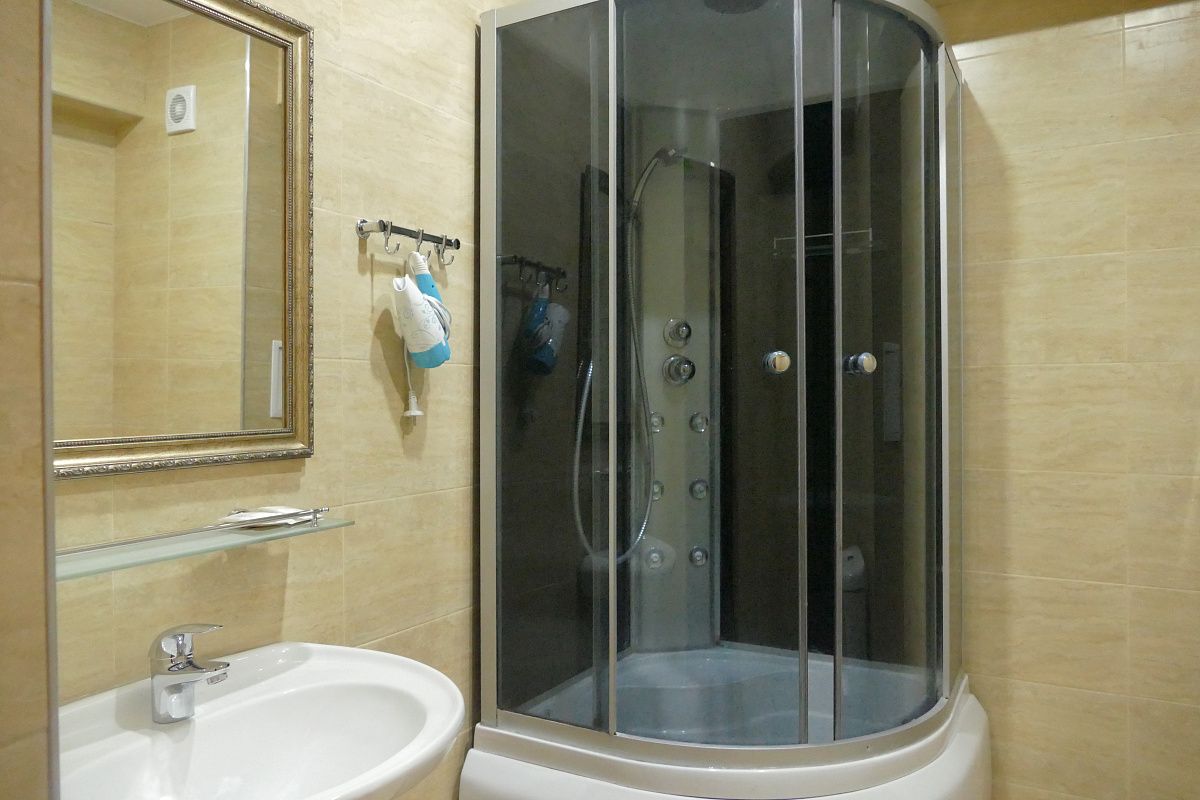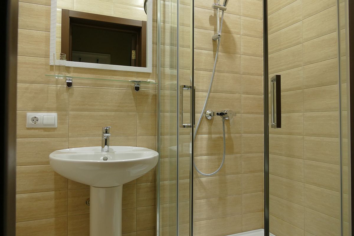Санузел: с душевой кабиной, туалетные принадлежности, фен