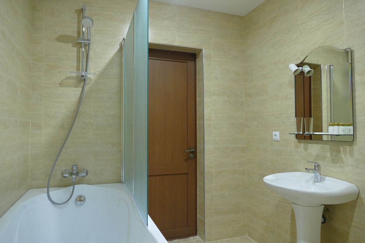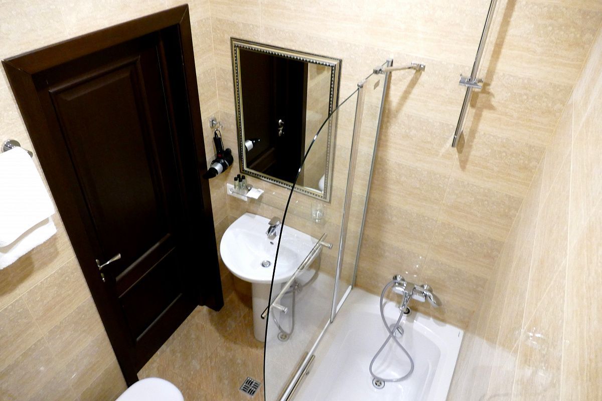 Санузел: с ванной или душевой кабиной, туалетные принадлежности, фен