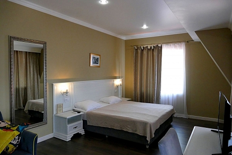 А самый ранний корпус отеля - «Приморская гостиница», созданная в 1903 г. В 2015-2018 годах была проведена реконструкция, теперь корпус имеет современный интерьер и соответствует стандартам гостиничного сервиса. Корпуса отеля «Абаата» расположен на охраняемой территории, украшенной южными растениями. «Абаата» готова предложить комфортные номера различных категорий. Удобные планировки, приятная мебель, отлично оборудованные санузлы — все это поможет отдохнуть душой и телом. Для удобства гостей в комнатах есть телевизор, холодильник, кондиционер, фен, можно воспользоваться бесплатным Wi-Fi.Питание гостей не входит в стоимость пребывания, но в основном ресторане «Абаата», кафе «Чайхона Абаата» и пляжном баре можно заказать все, что душа пожелает, в том числе – для детей: отель предназначен для семейного отдыха. Между завтраками, обедами и ужинами по детскому меню ребятишки могут резвиться на своей площадке и в игровой комнате.На первом месте, конечно, море, до которого всего 50 метров. Оборудованный песчано-галечный пляж украсит отдых в отеле.