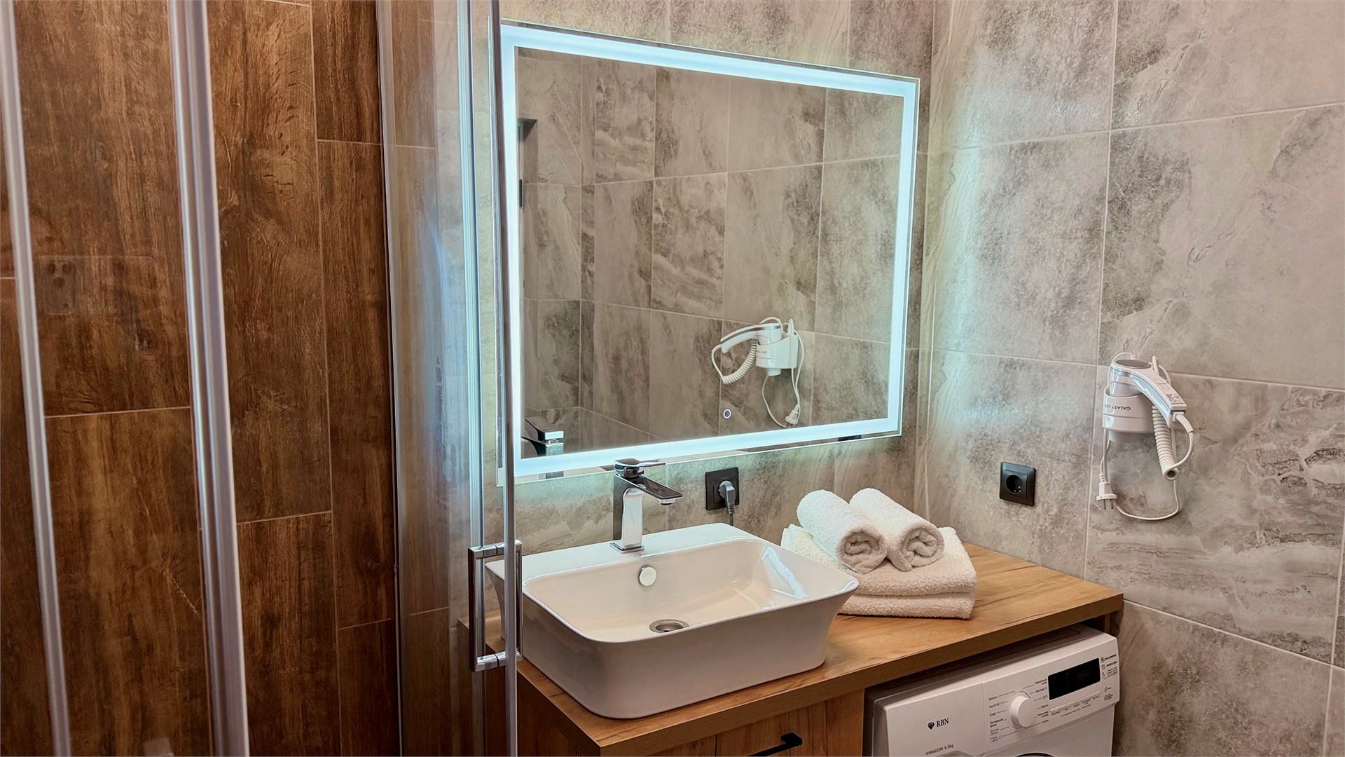 Санузел: с душем, туалетные принадлежности, фен