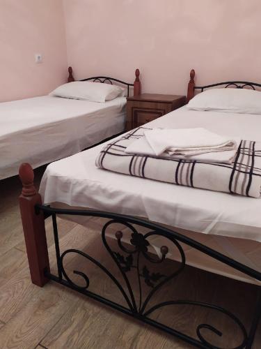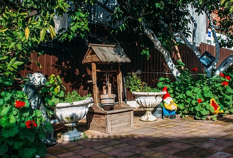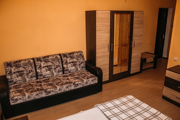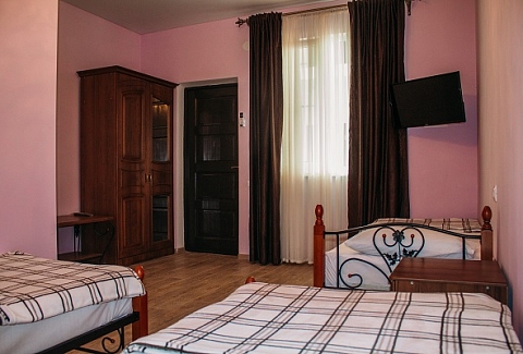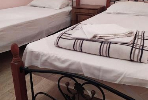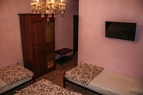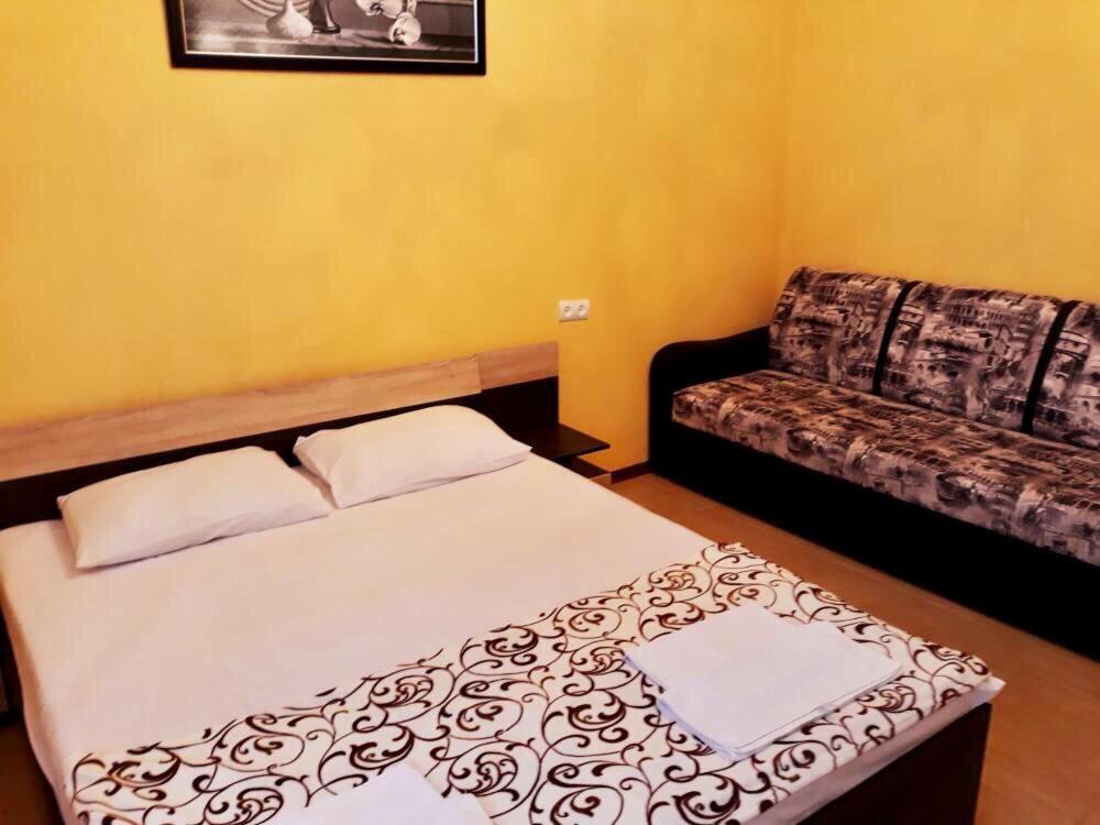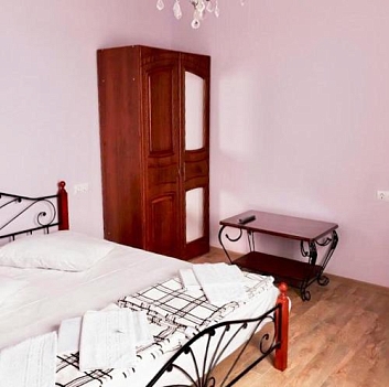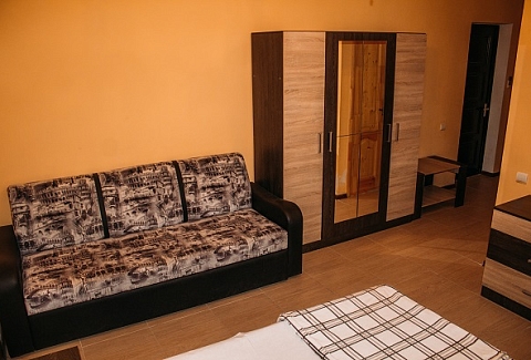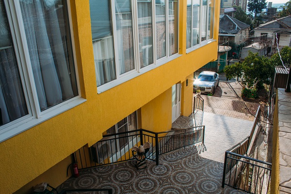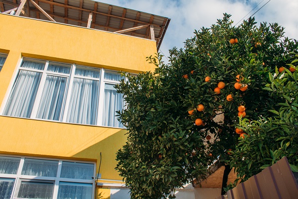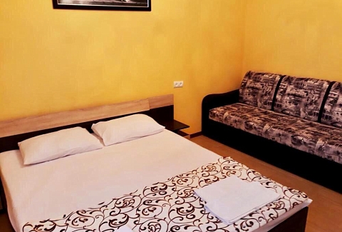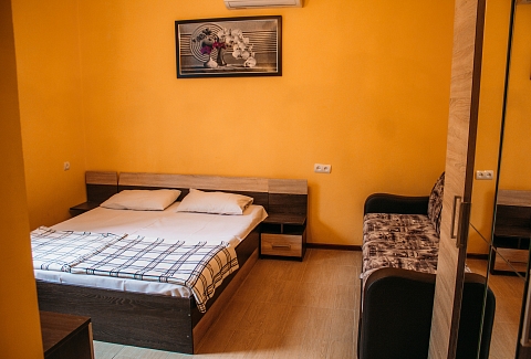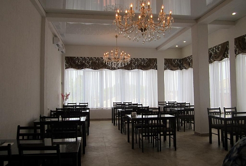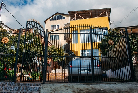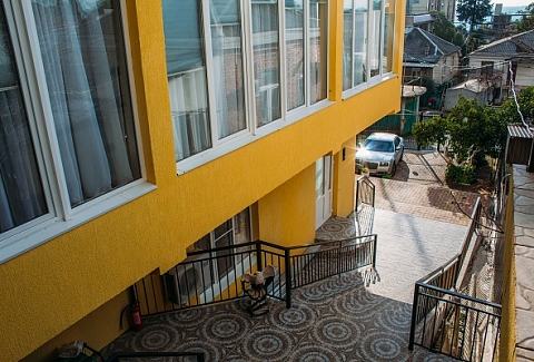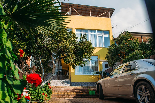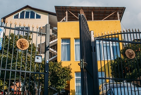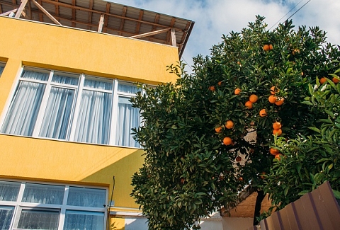 Неподалеку расположены местные курортные достопримечательности: городская набережная и аквапарк. Свежайшие овощи и фрукты можно покупать на местном рынке, он тоже рядом. Отель находится на благоустроенной закрытой территории с уголками для отдыха, беседками и скамейками под зеленой листвой. Гостевой дом, ориентированный на семейный отдых с детьми, состоит из двух 2-этажных корпусов. Во дворе отеля растет роскошное мандариновое дерево, плодами которого любят лакомиться гости. В жилом фонде отеля – уютные номера с разными вариантами размещения. В каждом номере есть необходимая бытовая техника, удобная мебель, санузел, бесплатный Wi-Fi. К услугам отдыхающих – летняя веранда и столовая отеля. В теплое время года гостям подают здесь завтраки, обеды и ужины. Неподалеку есть продуктовый магазин, дополнение к гостиничному меню.Песчано-галечный пляж находится в 100 метрах от гостиницы. Для любителей морских и воздушных ванн здесь выставлены шезлонги и лежаки под зонтами.