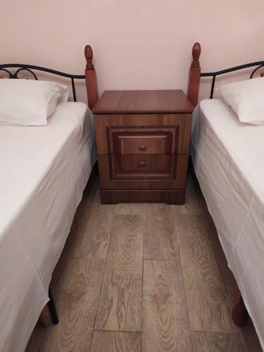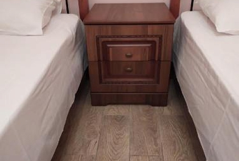 В номере: вешалка, зеркало, кровати односпальные, прикроватные тумбочки, стол, стул, шкаф, кондиционер, мини-холодильник, телевизор
