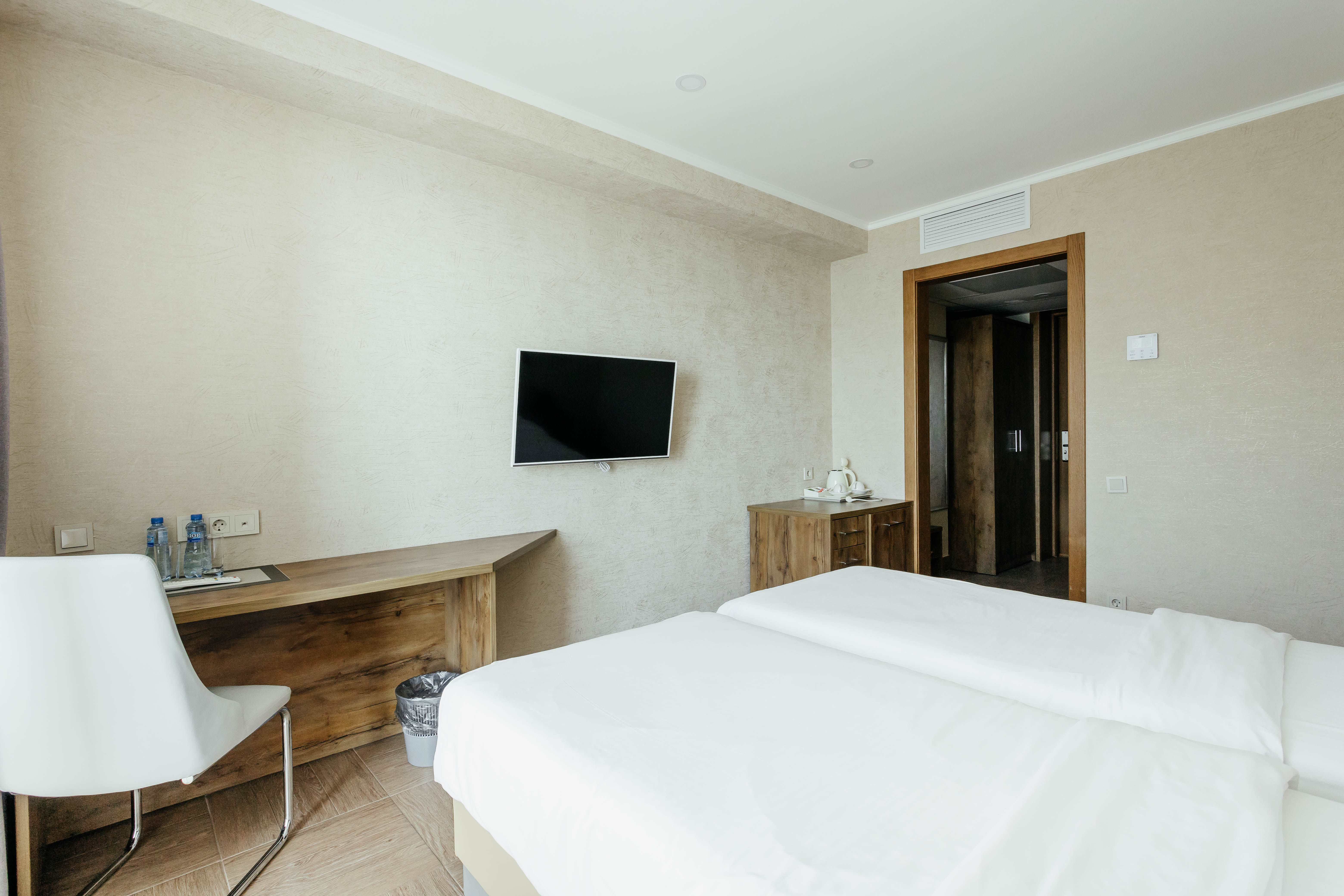 В номере: вешалка, зеркало, кровати односпальные /одна двуспальная кровать, прикроватные тумбочки, стол, стулья, шкаф, сейф, сплит-система, телевизор, телефон, холодильник, чайная станция