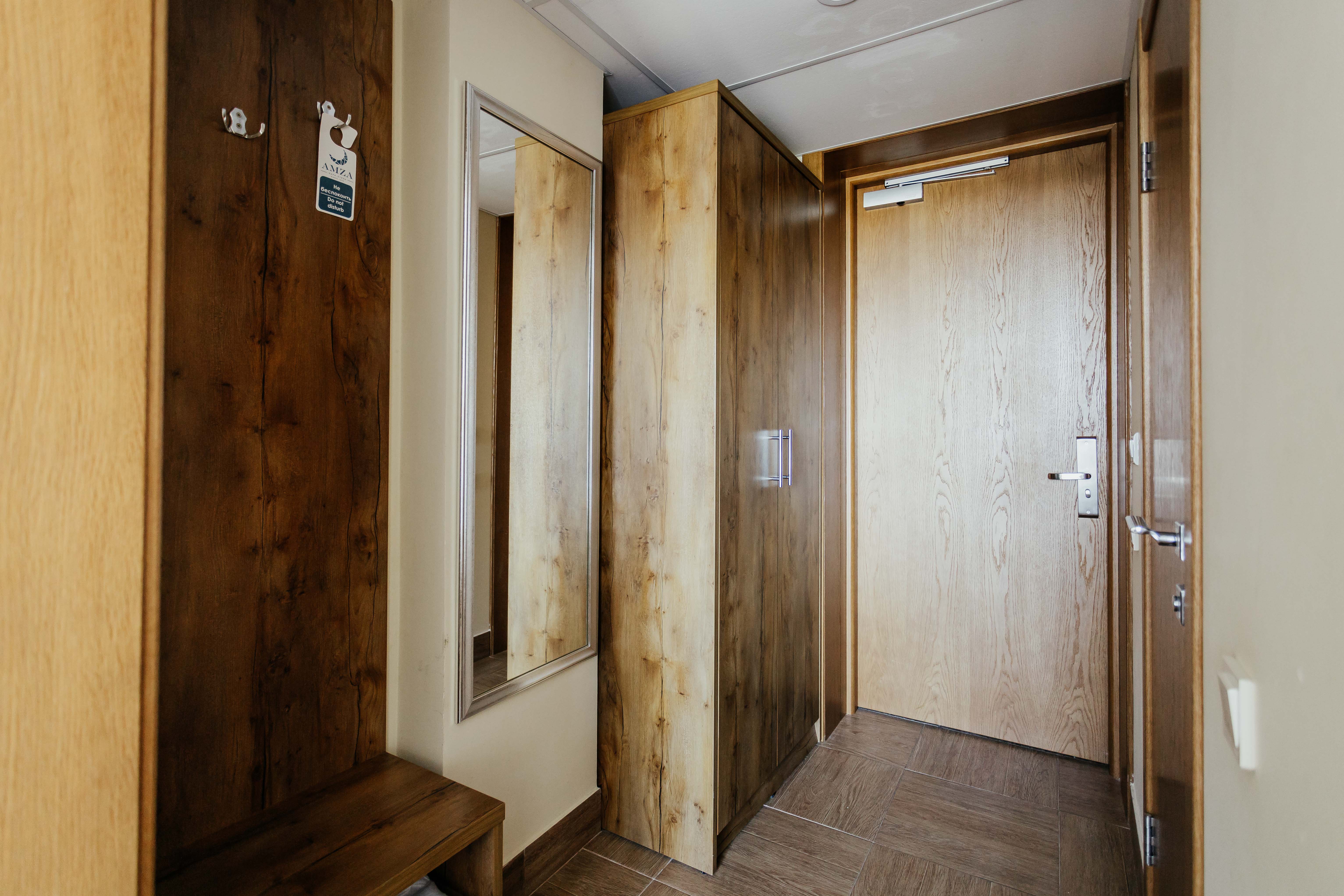 В номере: вешалка, зеркало, кровати односпальные, кровать двуспальная, прикроватные тумбочки, стол, стулья, шкаф, сейф, сплит-система, телевизор, телефон, холодильник, чайная станция