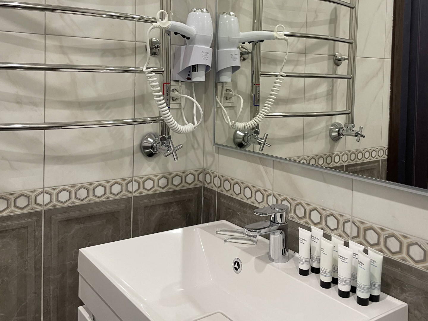 Санузел: с душем, туалетные принадлежности, фен