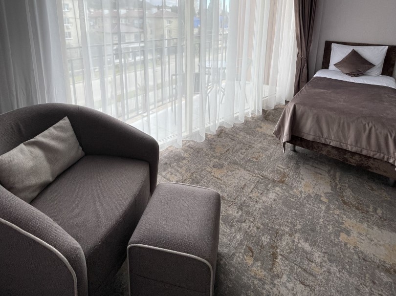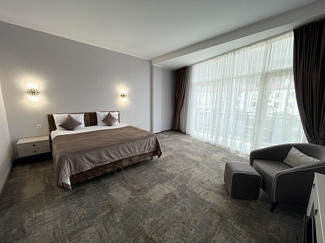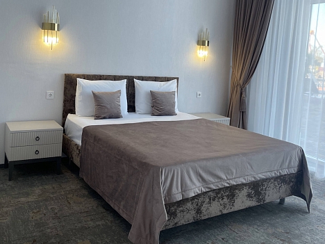 В 66 км расположена российско-абхазская граница.В распоряжении гостей пятиэтажное здание отеля с лифтом, оформленное в стиле лучших дизайнерских тенденций. Интерьер выполнен в светлых оттенках. В номерах - современная мебель, индивидуальная ванная комната, ТВ, холодильник. Доступен беспроводной интернет. В распоряжении гостей просторный ресторан, кафе и лобби-бар, в которых представлен щирокий выбор блюд и напитков на любой вкус. Круглогодично работает открытый бассейн, оформленный зоной отдыха с шезлонгами. Для детей обустроена игровая площадка и аттракционы. Ближайший песчано-галечный пляж расположен в 50 м от отеля. Он оборудован, в распоряжении отдыхающих раздевалки, навесы и зонты от солнца.