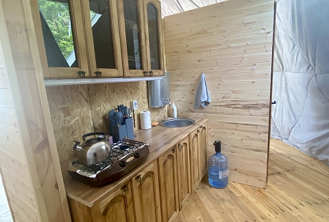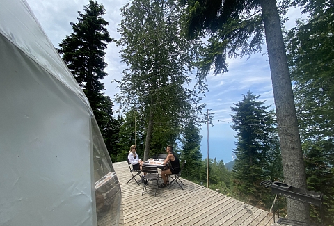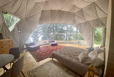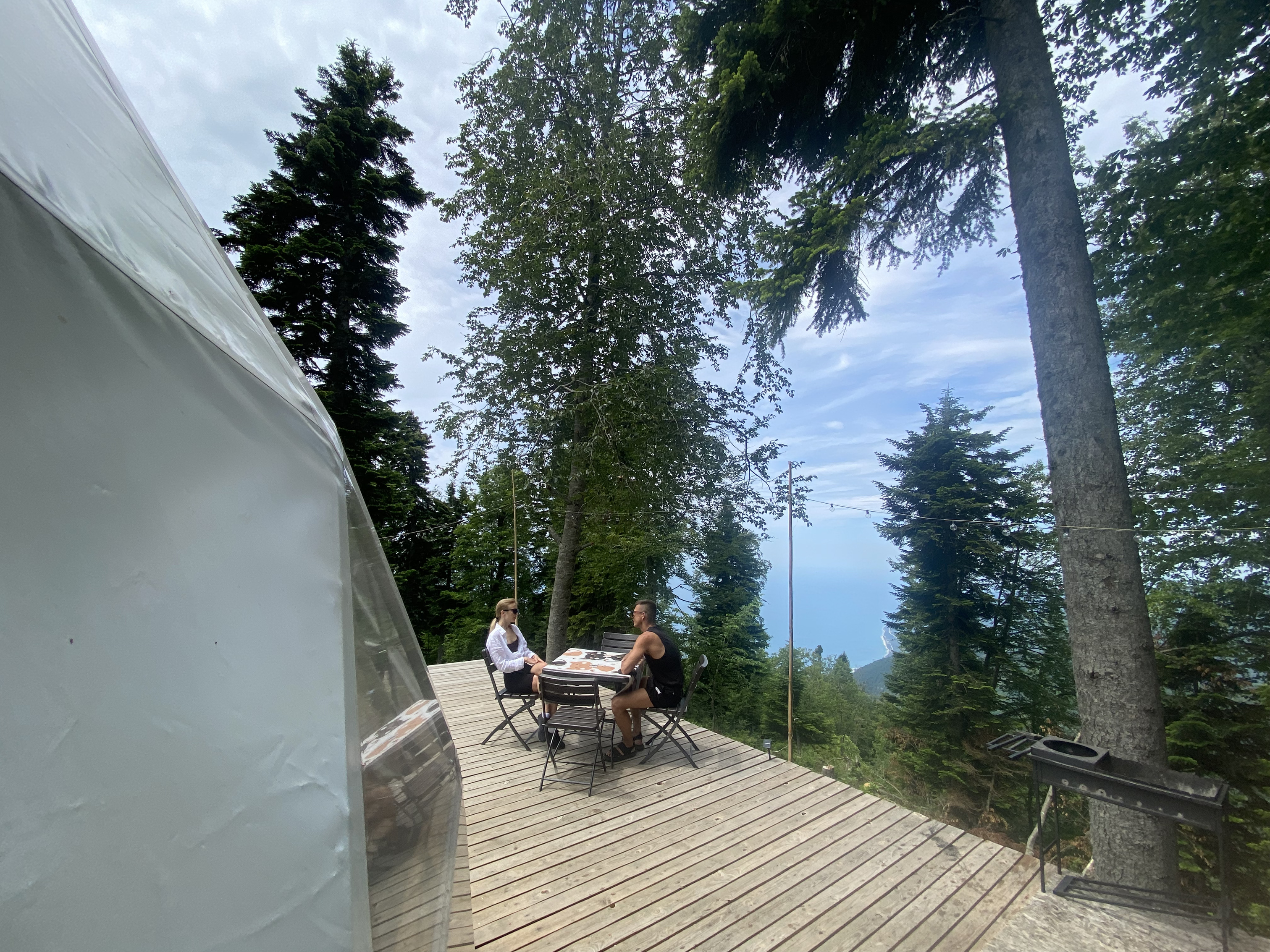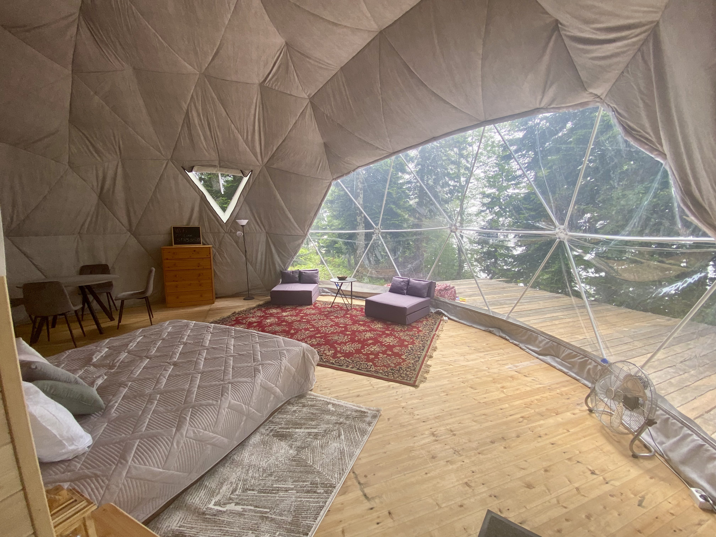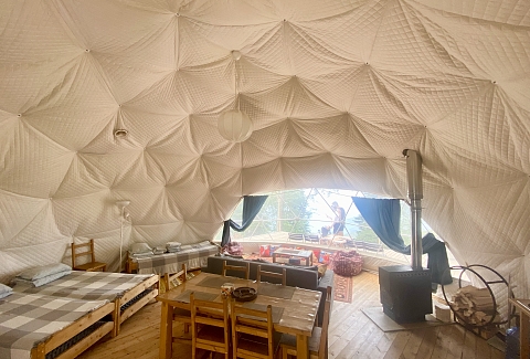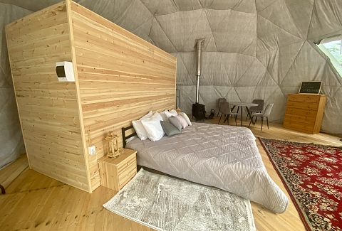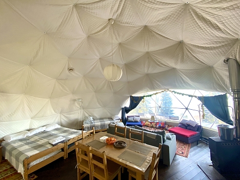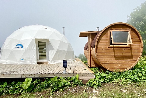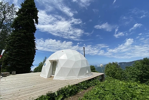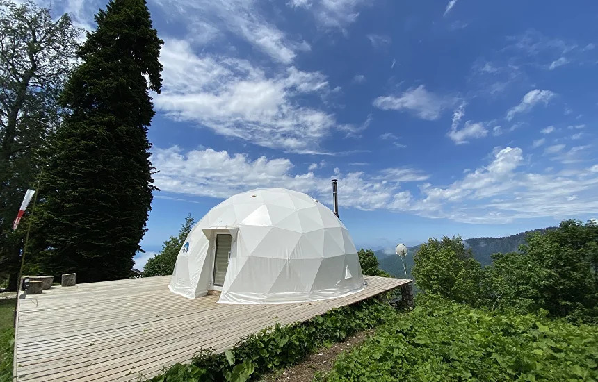 «Атмосфера» - это необычный комфортабельный эко-глэмпинг, расположенный в горах Абхазии, на горе Мамзышха, на высоте 1500 м над уровнем моря. До аэропорта в Адлере - 60 км, а до ближайшего населенного пункта 25 км.В «Атмосферу» приезжают гости, которые хотят отдохнуть в тишине от бешеного городского ритма, насладиться красотой и величием лесов, горных рельефов, побыть наедине с собой и своими мыслями. Глэмпинг «Атмосфера» - это уникальная возможность продлить удовольствие горного туризма на несколько дней и переночевать в уютном доме-сфере на горе Мамдзышха.Глэмпинг состоит из домов-сфер, рассчитанных до 6 человек.