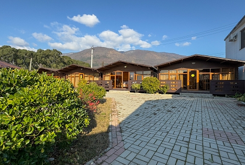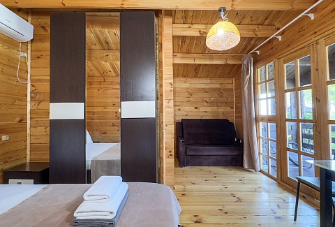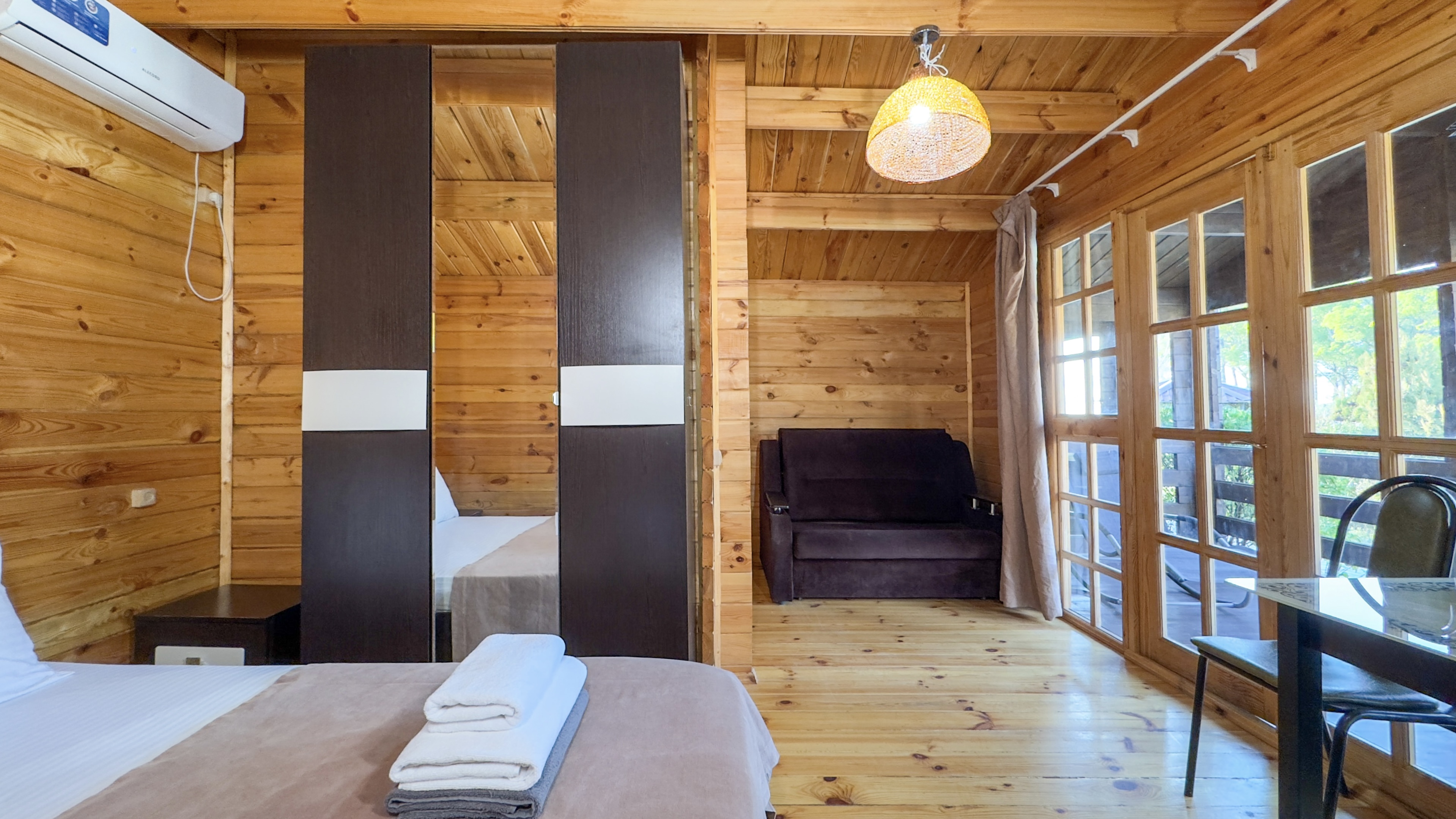 На живописной территории отеля находятся 4 каркасных бассейна – главное развлечение и радость для маленьких гостей, кафе с мангальной зоной, где гости смогут позавтракать и отведать шашлыки, рыбу или овощи на гриле, крытые лаунж-беседки с мебелью для отдыха, где можно вдоволь болтать, глядя на самое чистое и звездное небо Апсны. На ресепшене отеля предусмотрены настольные и спортивные игры: карты, мафия, шашки, шахматы, бадминтон.До оборудованного пляжа всего 20 метров, на пляже есть лежаки и навесы, которые предоставляются бесплатно для гостей отеля в высокий сезон.