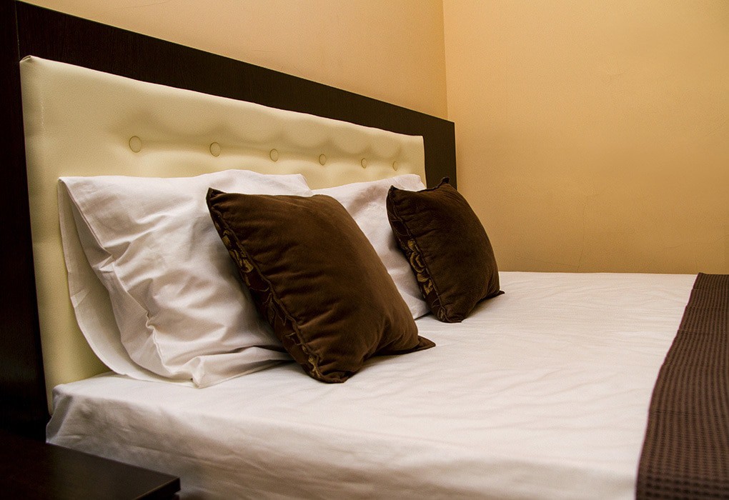 В номере: вешалка, зеркало, кровать двуспальная, прикроватные тумбочки, столик журнальный, шкаф, кондиционер, телевизор, холодильник