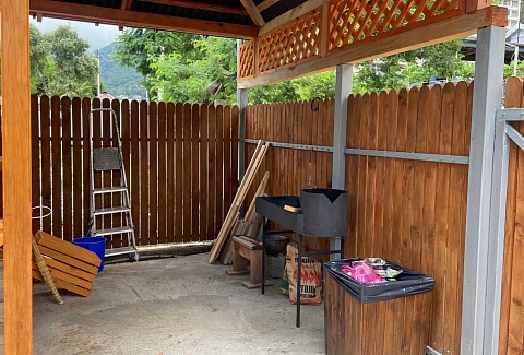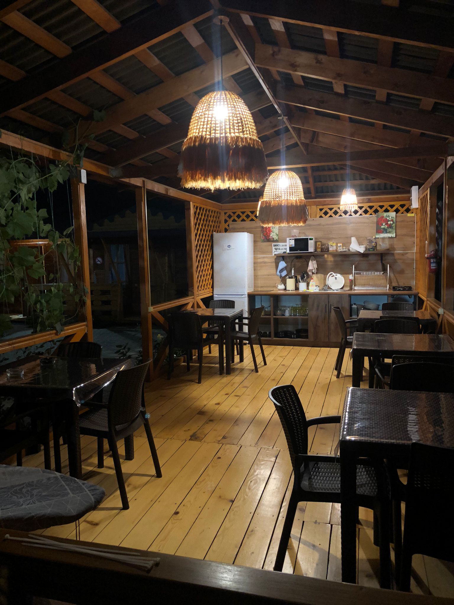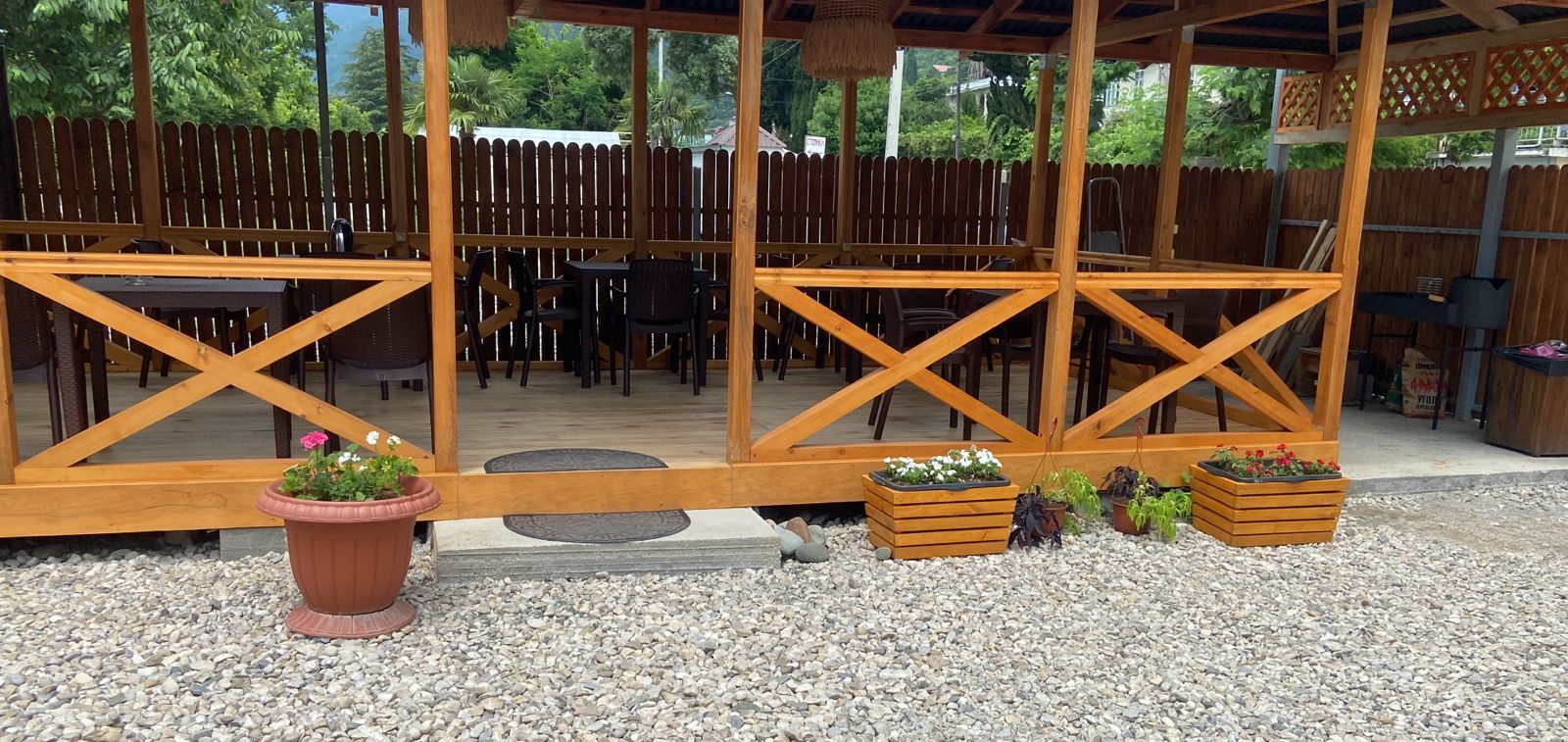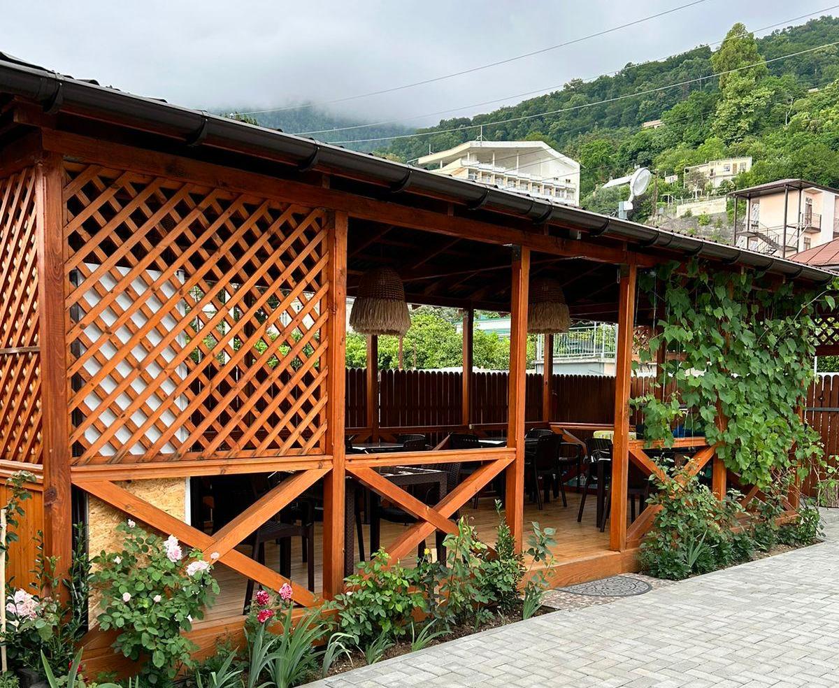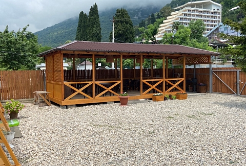 Коттеджный комплекс «Малина» располагается в самом центре старой Гагры, в 200 метрах от моря и плажа. В непосредственной близости полноценная инфраструктура города: остановка общественного транспорта, магазины, аптека, столовые, рестораны, пивоварни и городские парки, а рынок в 2 км.На территории предусмотрена терраса с общей кухней, оборудованная, всем необходимым, есть мангал и парковка. Для удобства гостей предоставляются стиральная машина, гладильная доска с утюгом.