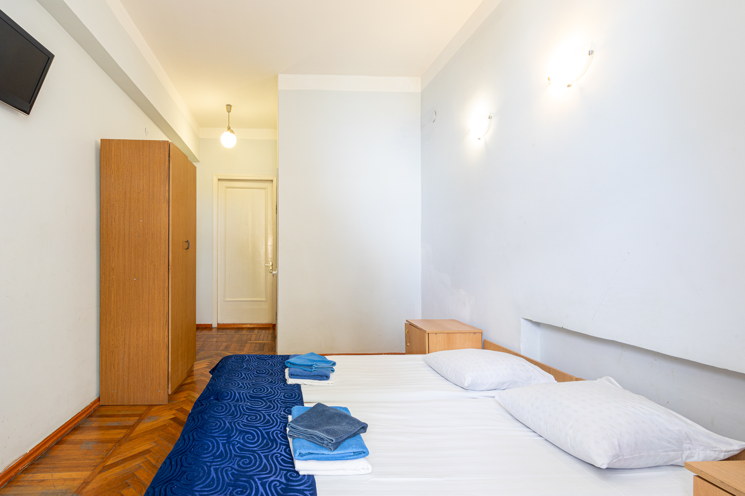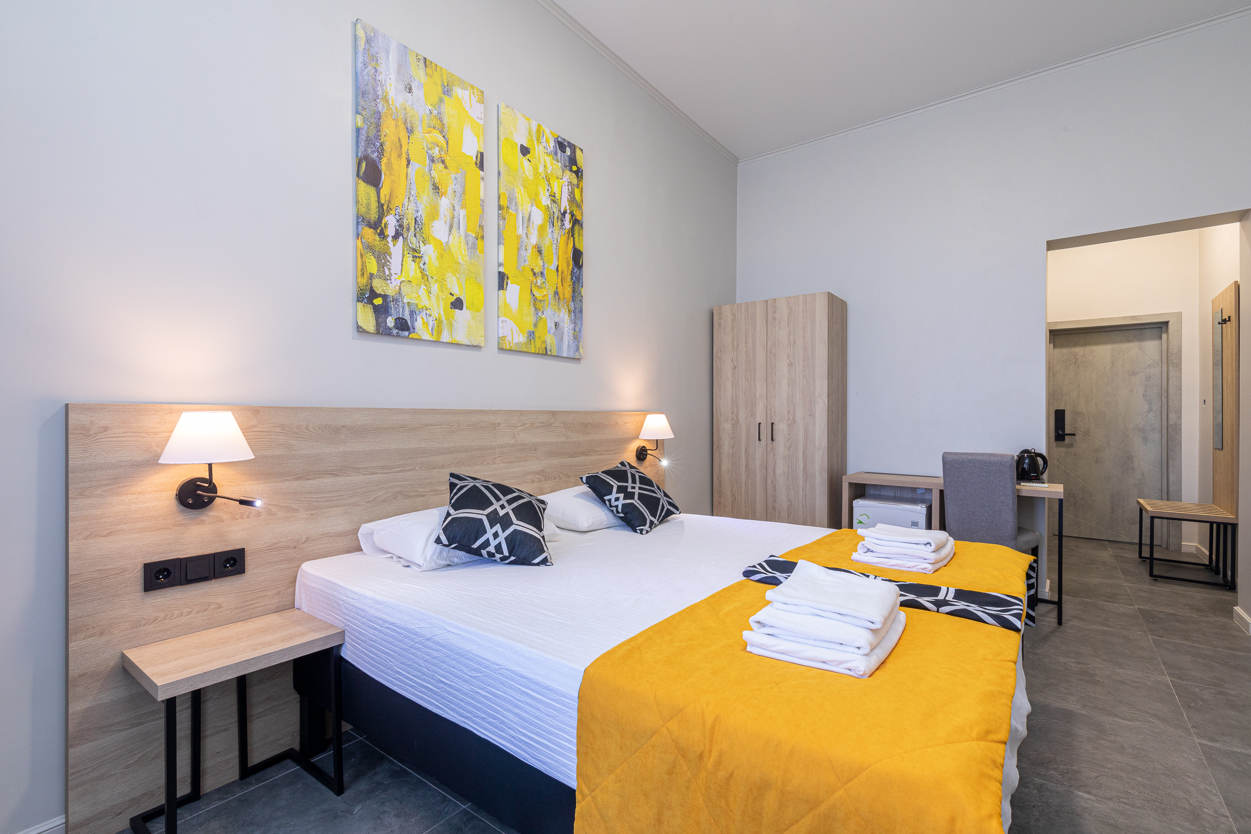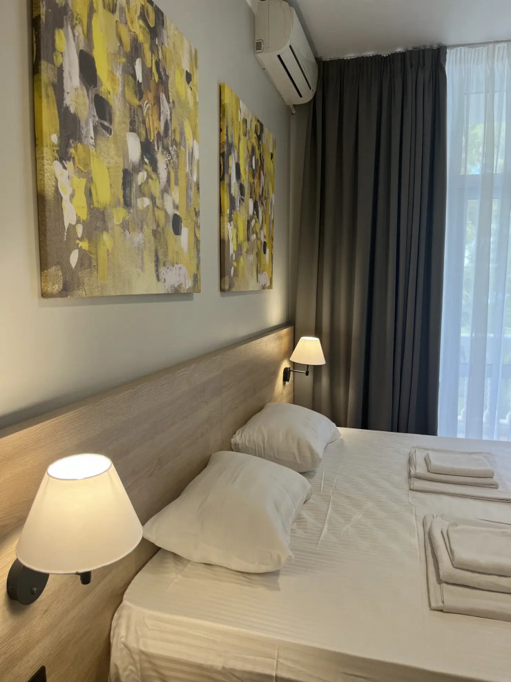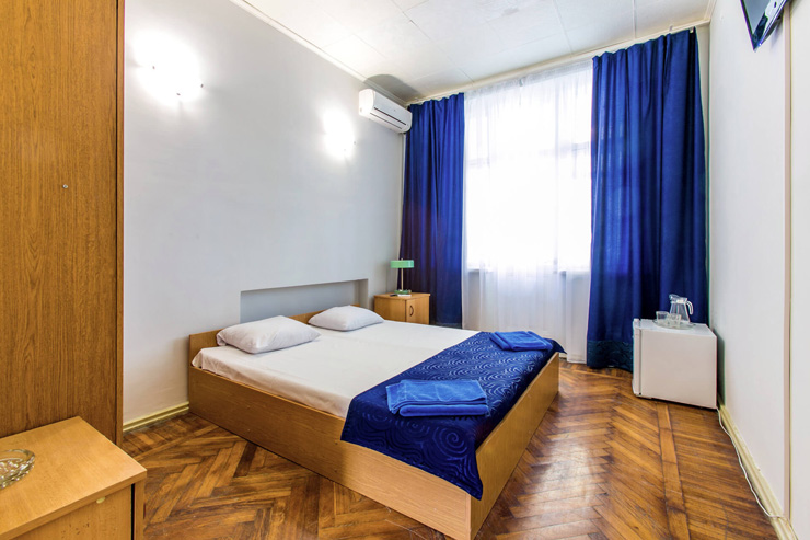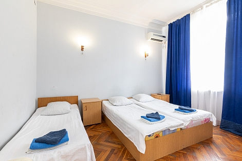 В номере: вешалка, зеркало, кресло-кровать, кровати односпальные, прикроватные тумбочки, стол, стул, шкаф, кондиционер, мини-холодильник, телевизор