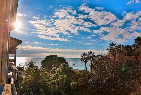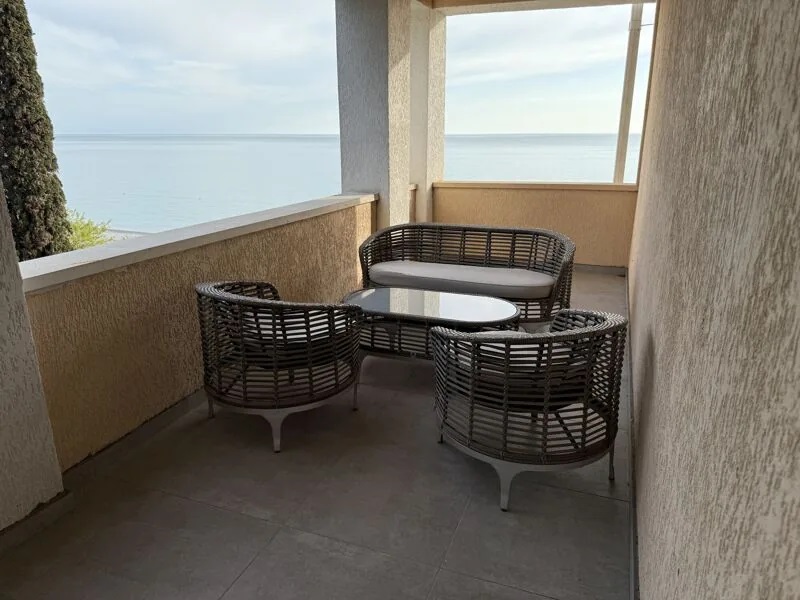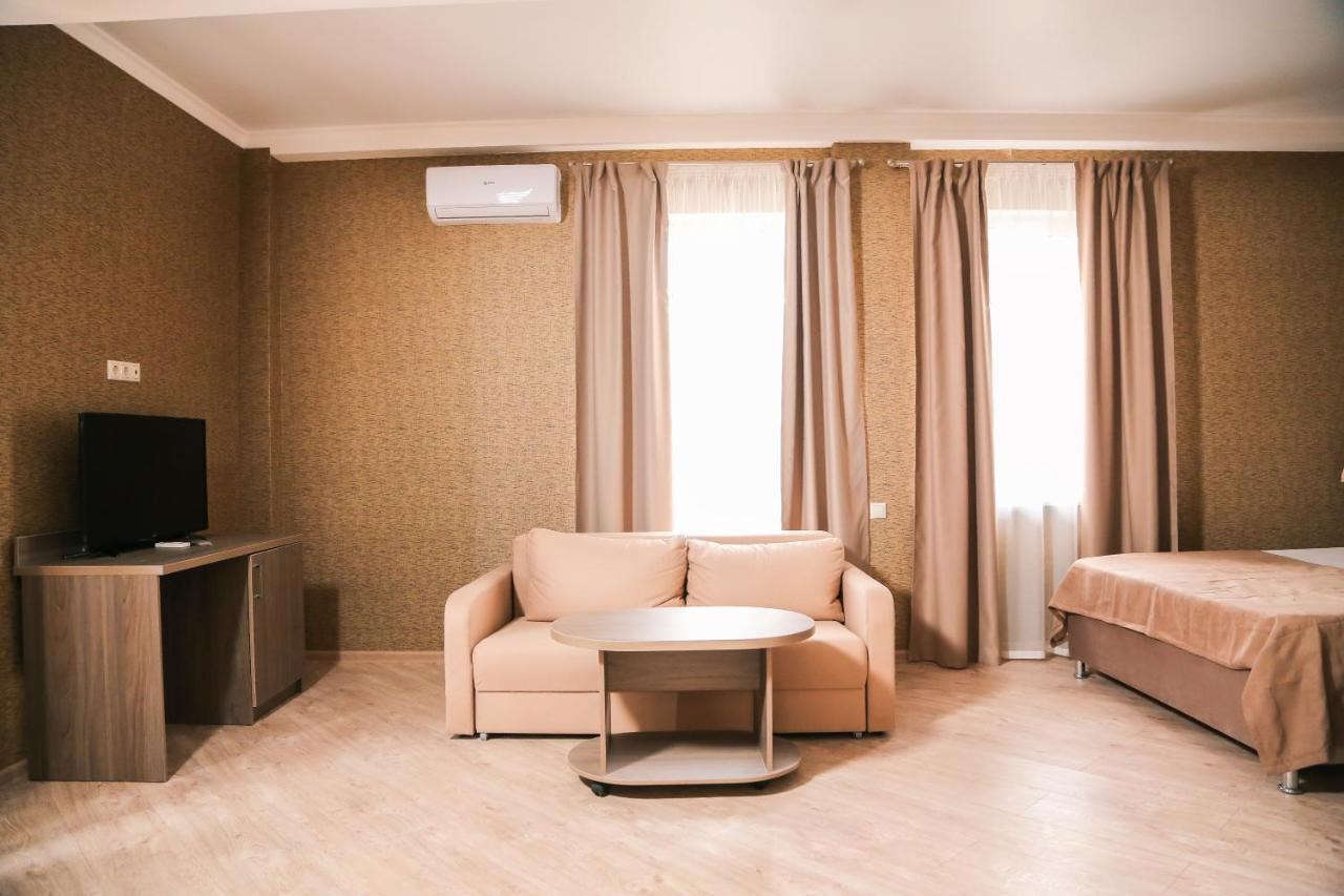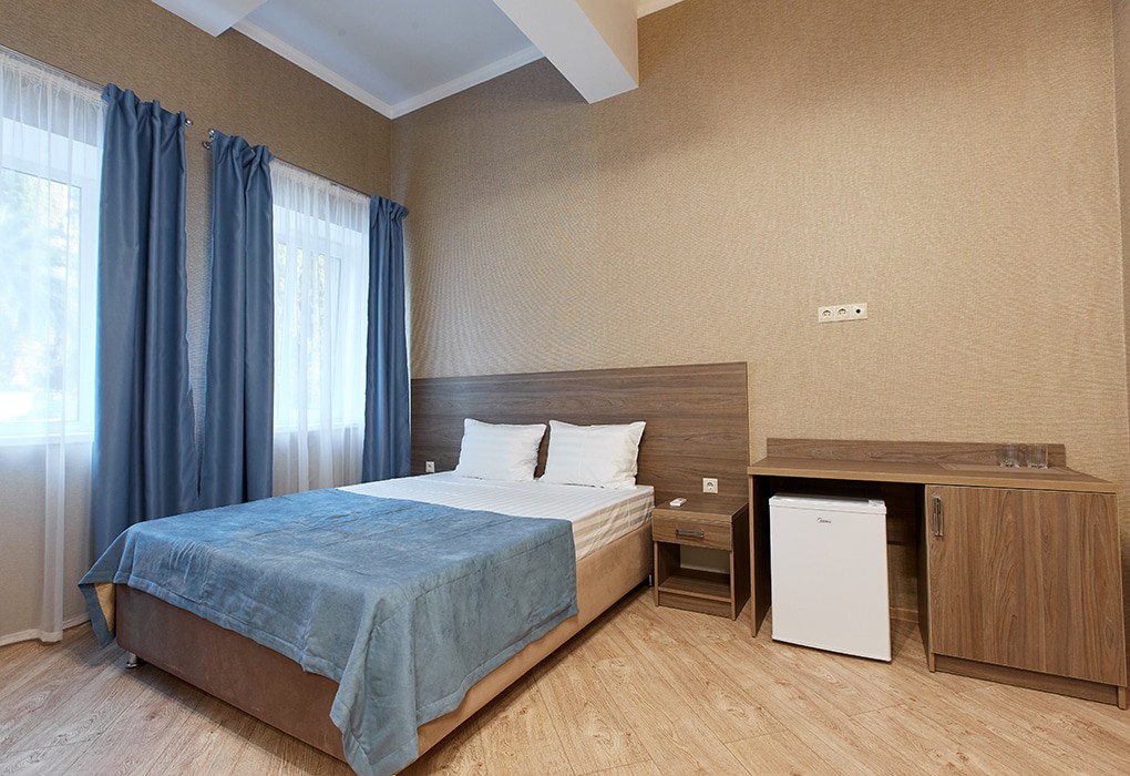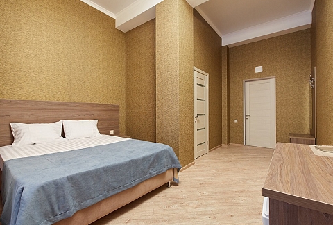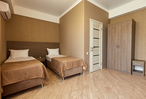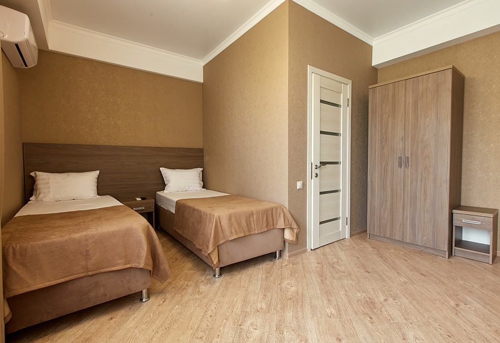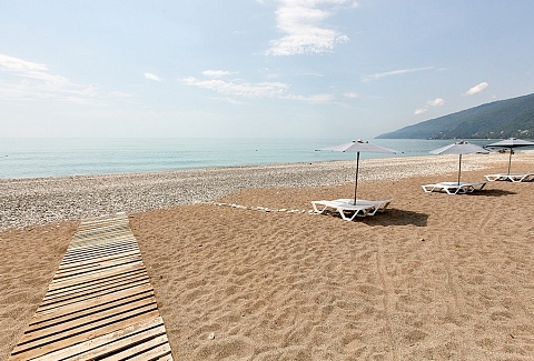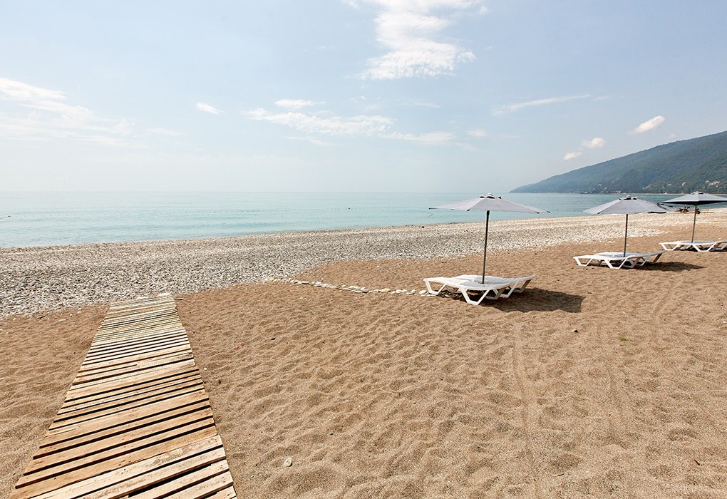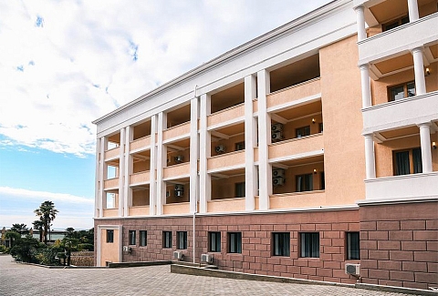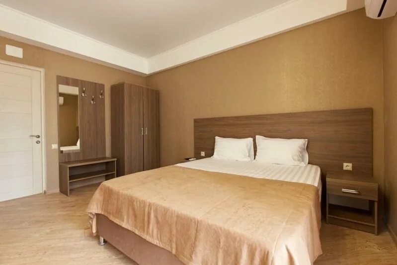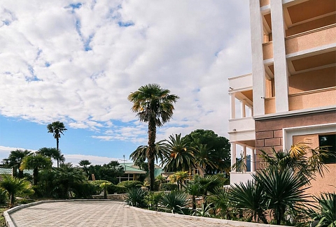 Четырехэтажный корпус отеля занимает небольшую закрытую территорию. Гостей ожидают 39 номеров Стандарт, Полулюкс и Люкс. Номера, выдержанные в пастельной гамме, оснащены душем, кондиционером, бытовой техникой — везде есть холодильник, телевизор, фен. При гостинице работает столовая, где отдыхающие могут заказать себе завтрак, обед и ужин. Гостям доступны услуги прачечной и беспроводной интернет. У администратора можно заказать экскурсии по интересным природным и культурным достопримечательностям Абхазии. В 10 метрах от корпуса отеля находится городской песчано-галечный пляж. Пляж оборудован, на побережье работает прокат лежаков и шезлонгов, есть раздевалки и навесы.