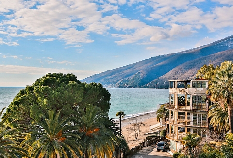 - Поездом или самолетом – до города Адлер, далее на общественном транспорте или на такси до Казачьего рынка (8 км от ж/д вокзала, 15 км от аэропорта), затем пройти пешком около 500 метров до пограничного поста на р. Псоу до границы России и Абхазии. После самостоятельного прохождения паспортного и таможенного контроля до места отдыха можно доехать на автобусе, маршрутном такси или воспользоваться услугами частных водителей.