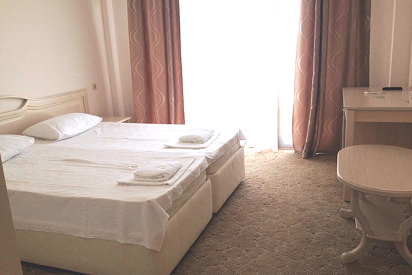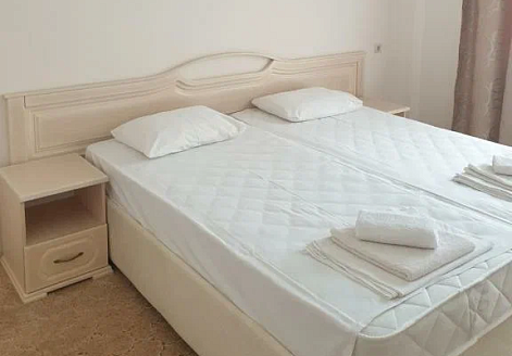 В номере: вешалка, зеркало, кровати односпальные /одна двуспальная кровать, прикроватные тумбочки, стол, стул, шкаф, кондиционер, телевизор, холодильник, чайный набор посуды, электрочайник