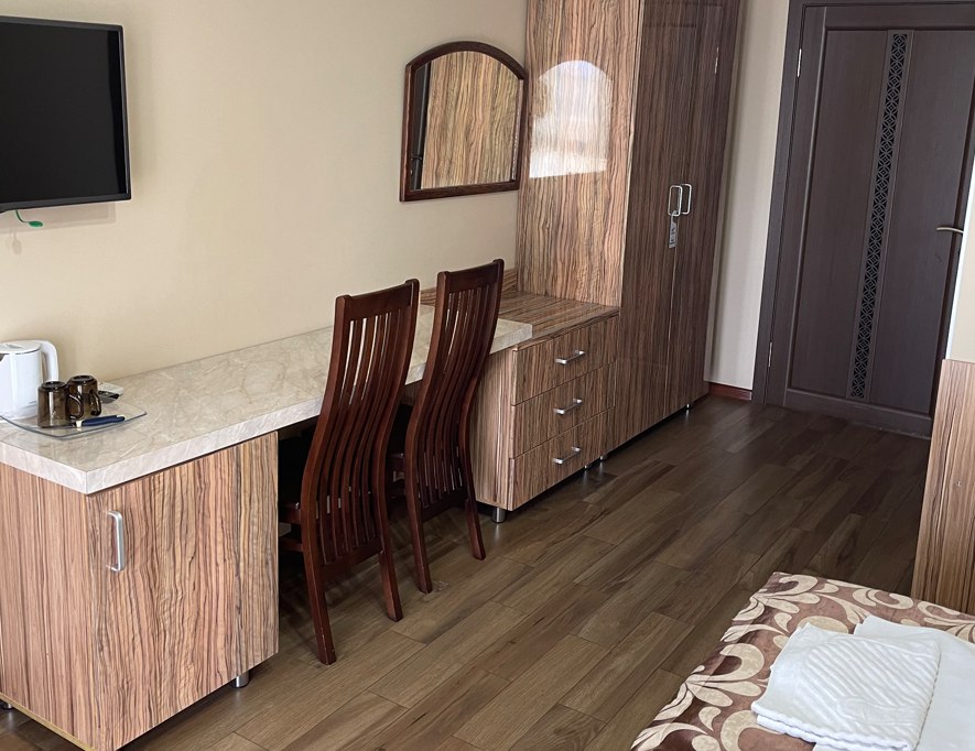 К услугам гостей частная парковка на территории. На всей территории гостевого дома работает Wi-Fi.Номера просторные и уютные. На первом этаже здания функционирует столовая, где гостям отеля предлагают на завтрак. Можно заказать обед и ужин по меню. Это уютное и комфортабельное место для отдыха, где каждый найдет все, что нужно современному туристу: качественный сервис и всегда готовый откликнуться на любую просьбу персонал.
