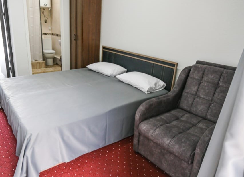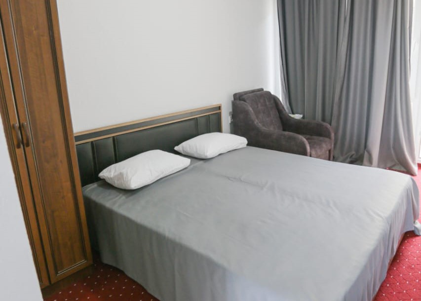 В номере: вешалка, зеркало, кресло, кровать двуспальная, шкаф, кондиционер, телевизор, холодильник