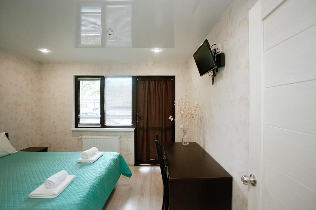 Все номера оснащены отдельными санузлами с душем, в комнатах есть Wi-Fi, спутниковое телевидение, кондиционер, холодильник и фен. На территории, украшенной южными растениями, работает кафе-бар с абхазской и европейской кухней, организована зона для барбекю с мангалами. Вечером гости могут послушать музыку и потанцевать, а днем отдохнуть возле небольшого бассейна на теневых террасах и площадках. Все желающие могут арендовать велосипеды для прогулок по окрестностям.Всего в паре минут ходьбы — песчано-галечный пляж с лежаками, навесами и раздевалками.