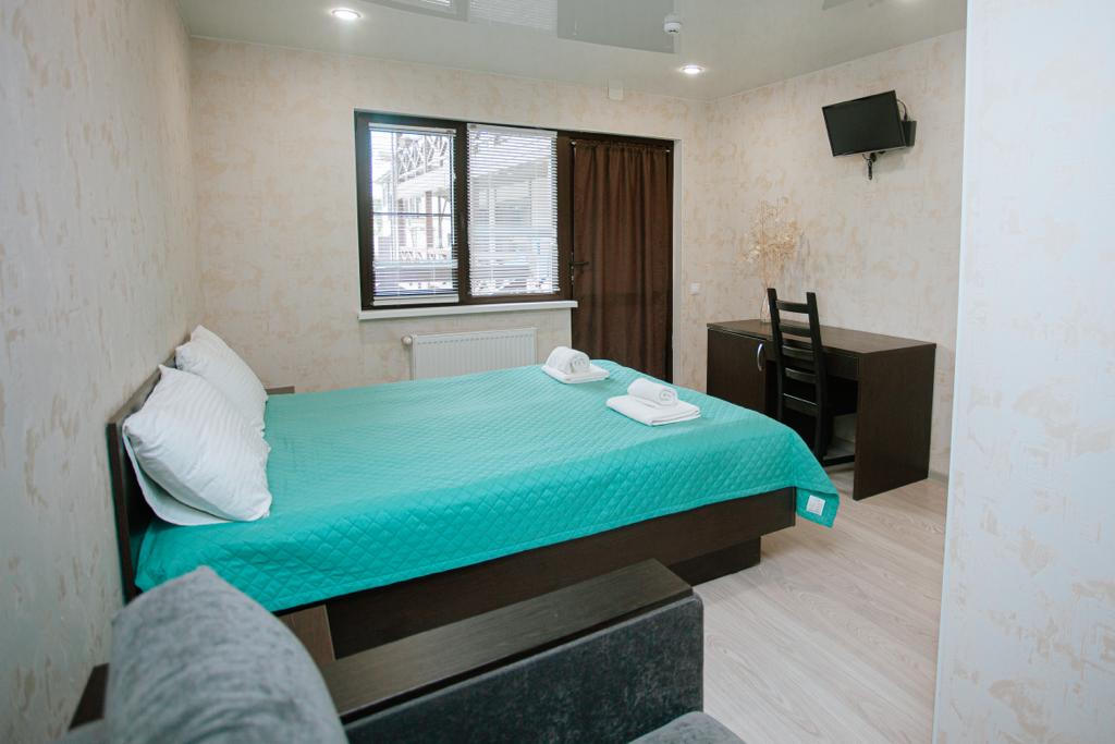В номере: вешалка, зеркало, кресло-кровать, кровати односпальные /одна двуспальная кровать, прикроватные тумбочки, стол, стул, шкаф, кондиционер, телевизор, холодильник, электрочайник