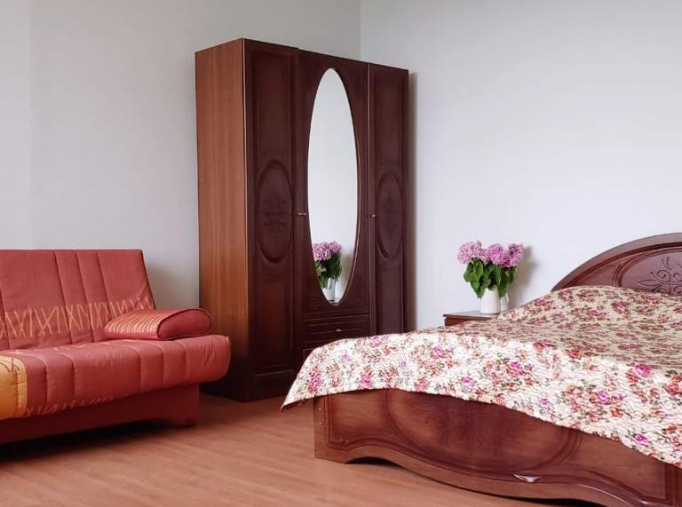 В номере: вешалка, диван раскладной, зеркало, кровать двуспальная, прикроватные тумбочки, шкаф, гладильная доска, кондиционер, мини-холодильник, телевизор, утюг, электрочайник