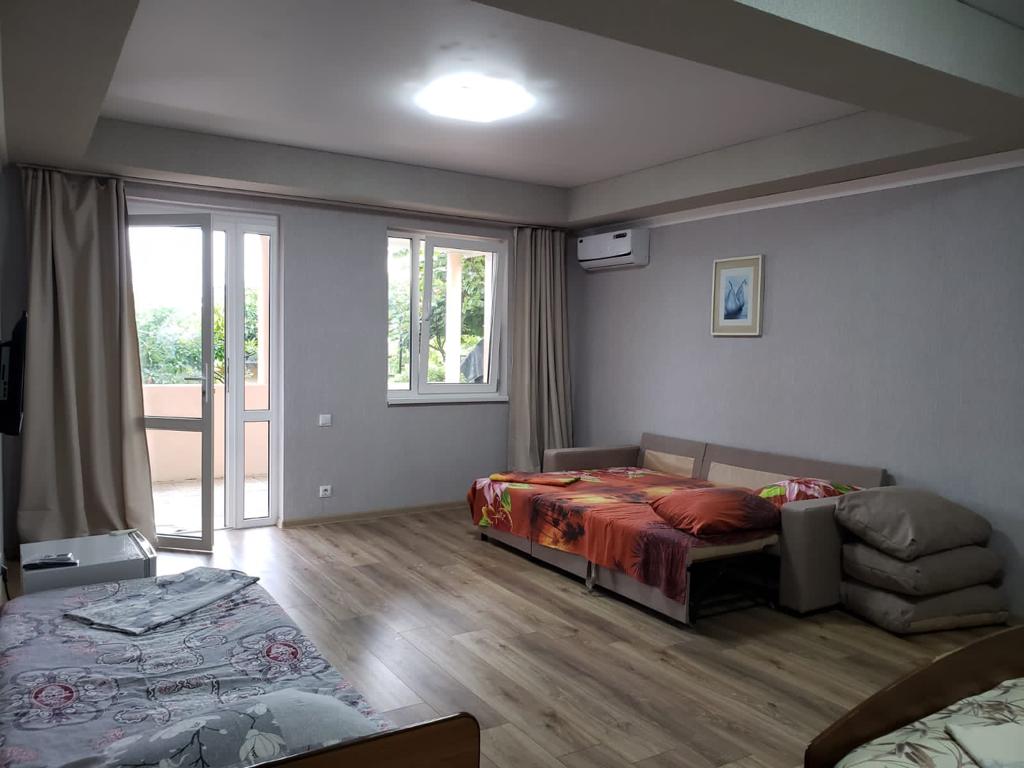 В номере: вешалка, диван раскладной, зеркало, кровать двуспальная, кровать односпальная, прикроватные тумбочки, шкаф, гладильная доска, кондиционер, мини-холодильник, телевизор, утюг, электрочайник