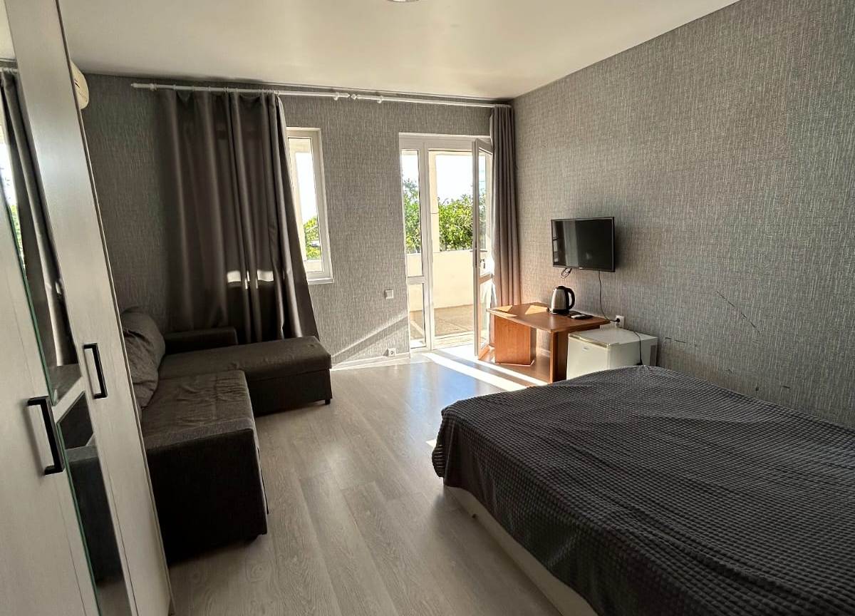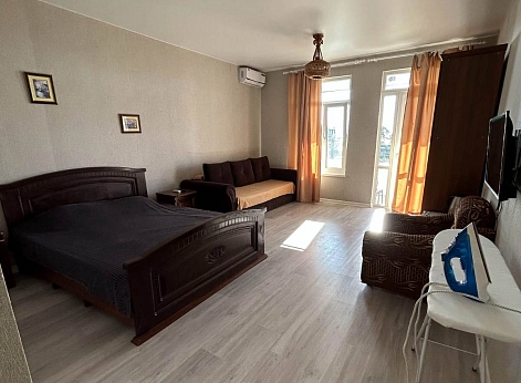 В номере: вешалка, диван раскладной, зеркало, кровать двуспальная, прикроватные тумбочки, стол, шкаф, гладильная доска, кондиционер, мини-холодильник, телевизор, утюг, электрочайник