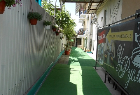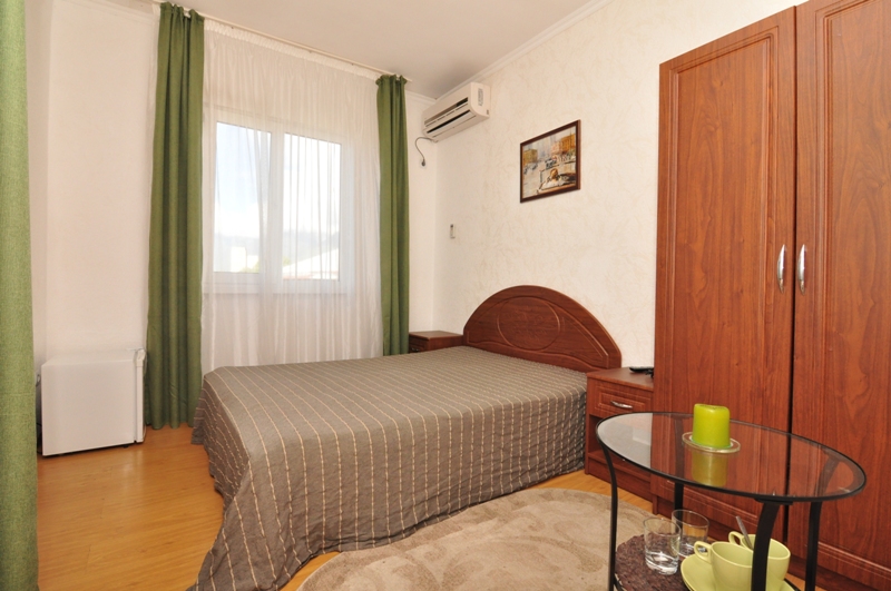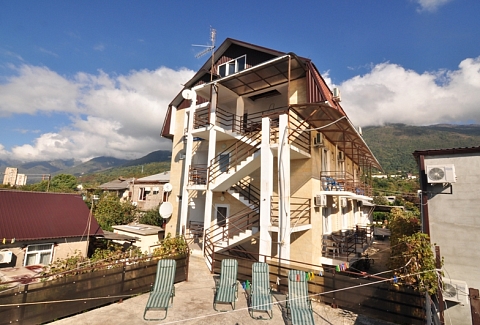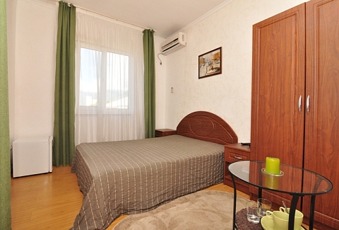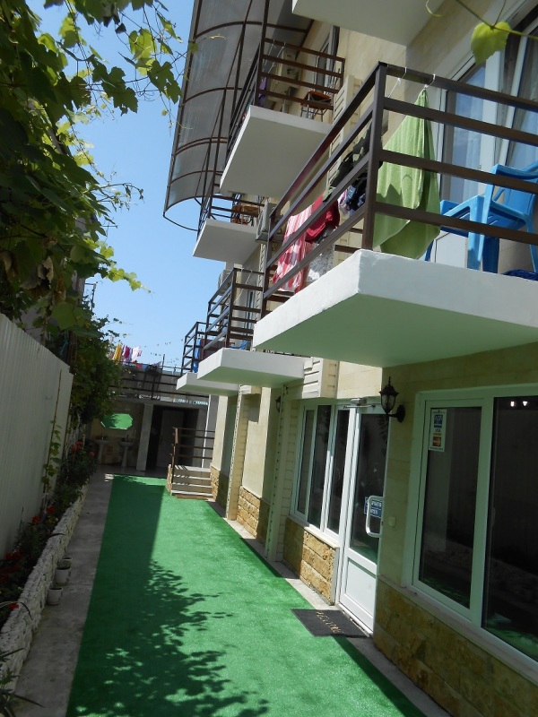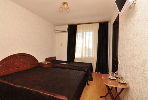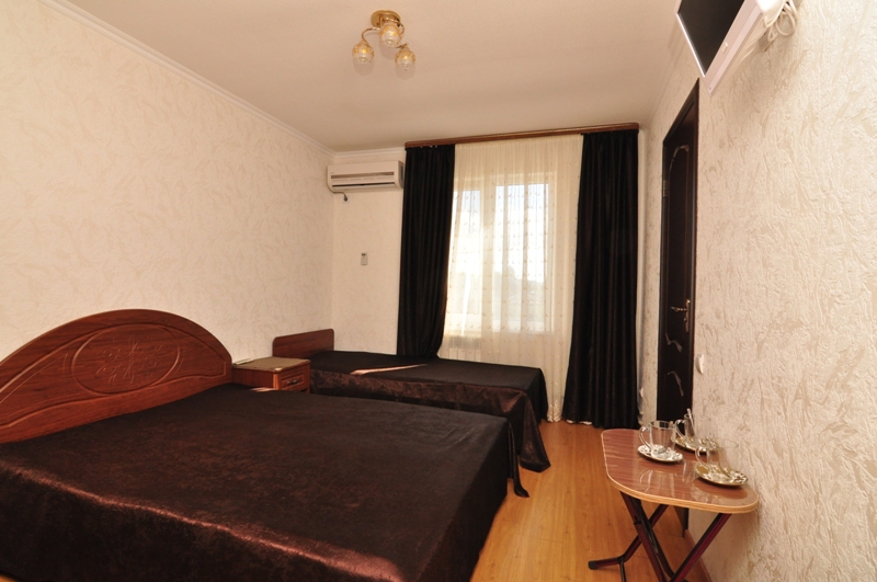 Четырехэтажный корпус отеля (без лифта) возвышается на закрытой охраняемой территории. Гостей ожидают 18 номеров категории Стандарт, рассчитанных на 2-х и 3-х местное размещение. В номерах есть необходимая мебель, собственный санузел с душем и бытовая техника — кондиционер, телевизор, холодильник. В некоторых комнатах предусмотрен балкон. При гостевом доме работает кафе, есть мангальная площадка, где отдыхающие могут пожарить мясо или сделать овощи-гриль. В распоряжении гостей крытый бассейн, беспроводной интернет на всей территории, для автовладельцев организована парковочная зона. На ресепшене можно заказать трансфер или приобрести экскурсии по главным достопримечательностям республики. В 800 метрах от корпуса находится городской пляж. Пляж, покрытый галькой, оборудован раздевалками.