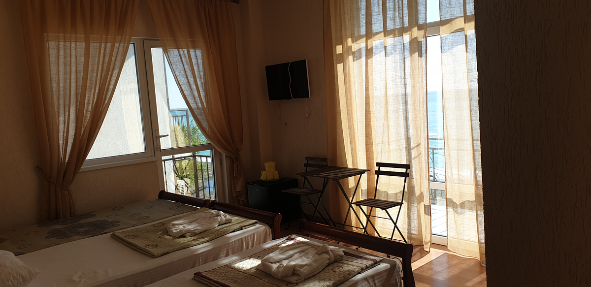В номере: вешалка, зеркало, кровати односпальные /одна двуспальная кровать, прикроватные тумбочки, стол, стул, шкаф, кондиционер, телевизор, холодильник