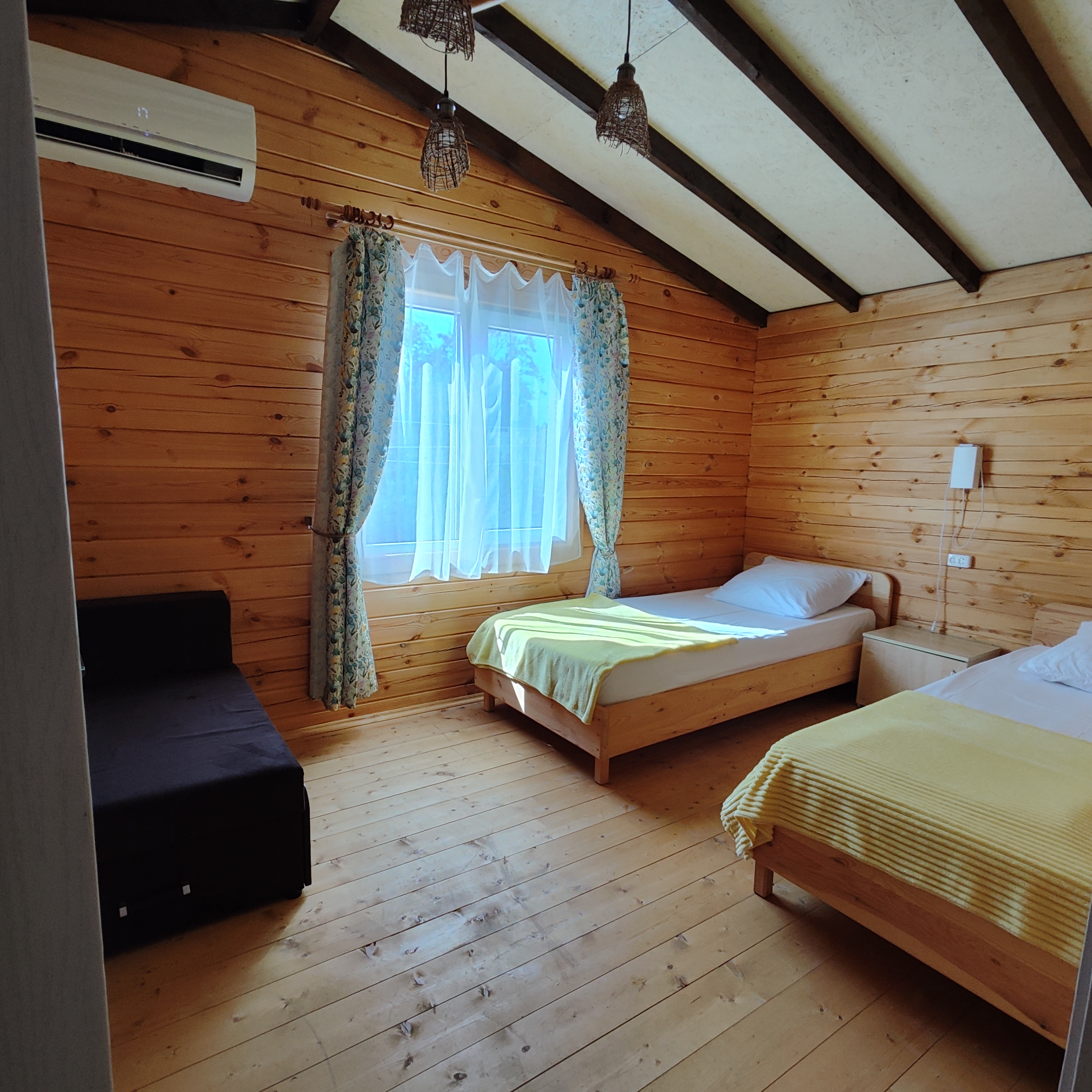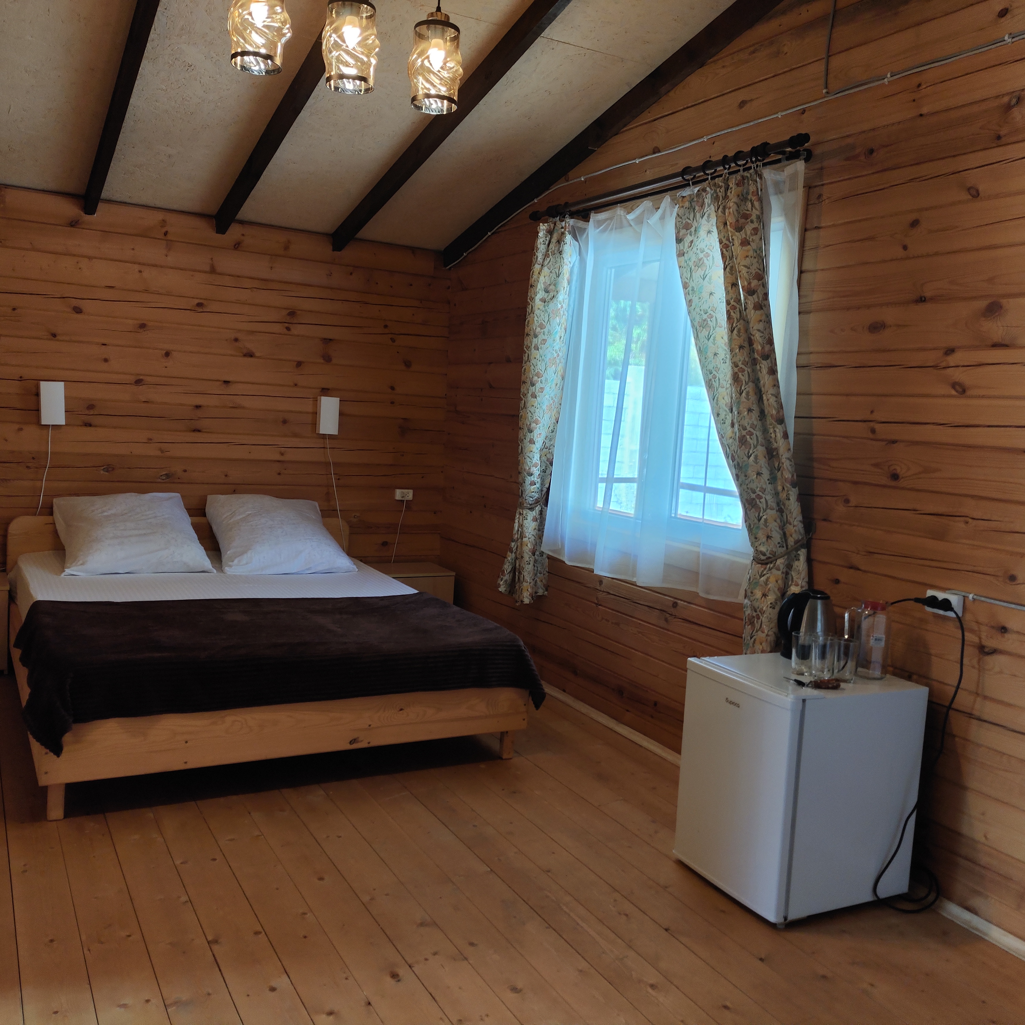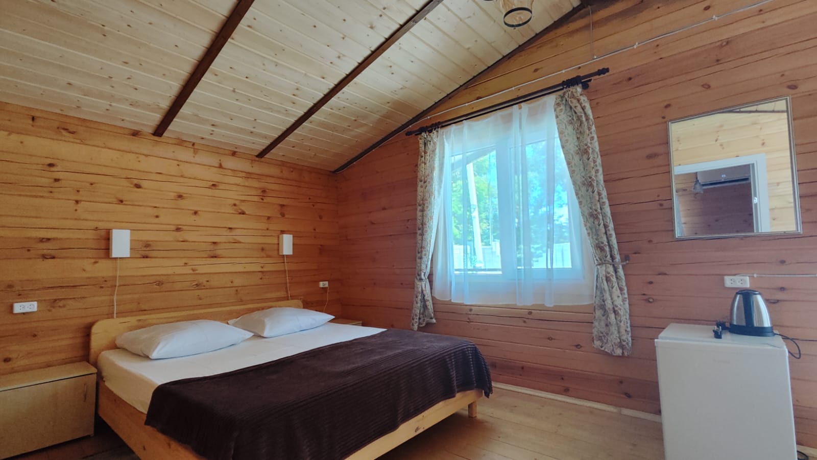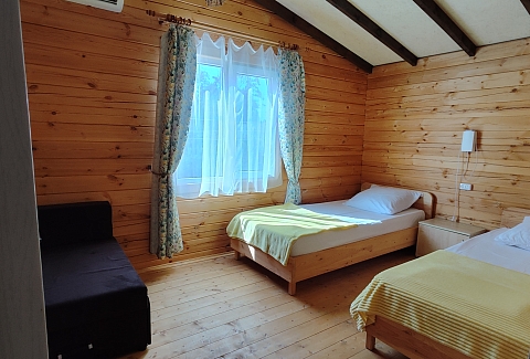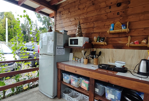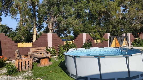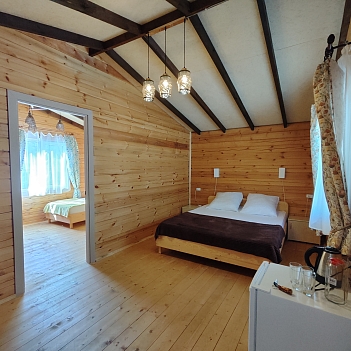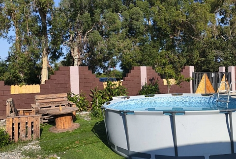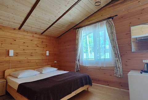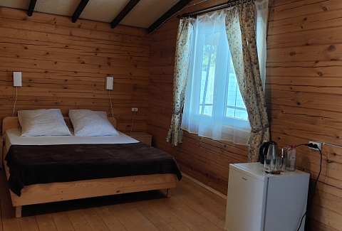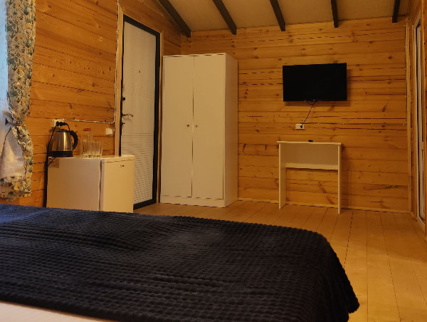 Это не просто номера, а полноценное индивидуальное жильё, состоящее из двух изолированных комнат, что позволяет гостям чувствовать себя практически как на собственной даче, но со всем необходимым для беззаботного отдыха. Внутри каждого домика царит атмосфера домашнего уюта: гостиная и спальня оборудованы для комфортного размещения компании до пяти-шести человек. В распоряжении гостей двуспальная кровать и односпальные места, а при необходимости всегда можно организовать дополнительное спальное место.Продумана и техническая сторона отдыха: каждый домик оснащён современным санузлом с душевой кабиной, телевизором и сплит-системой, позволяющей поддерживать идеальную температуру в любое время года. Для хранения ценных вещей предоставляется индивидуальный сейф, а мелочи вроде фена и чайника уже ждут своих путешественников. На всей территории работает беспроводной интернет, чтобы всегда оставаться на связи.Центром притяжения в жаркий полдень становится каркасный бассейн с пресной водой, расположенный под открытым небом. Однако главная гордость комплекса — это терраса. Здесь, в тени навеса, с удобной садовой мебелью, особенно приятно проводить время вечерами. Для гурманов и любителей готовить на природе созданы все условия: оборудована летняя кухня с электроплитой, микроволновой печью и всем необходимым инвентарём, а в мангальной зоне гостей ждёт готовый очаг с решётками и шампурами для приготовления сочного барбекю.