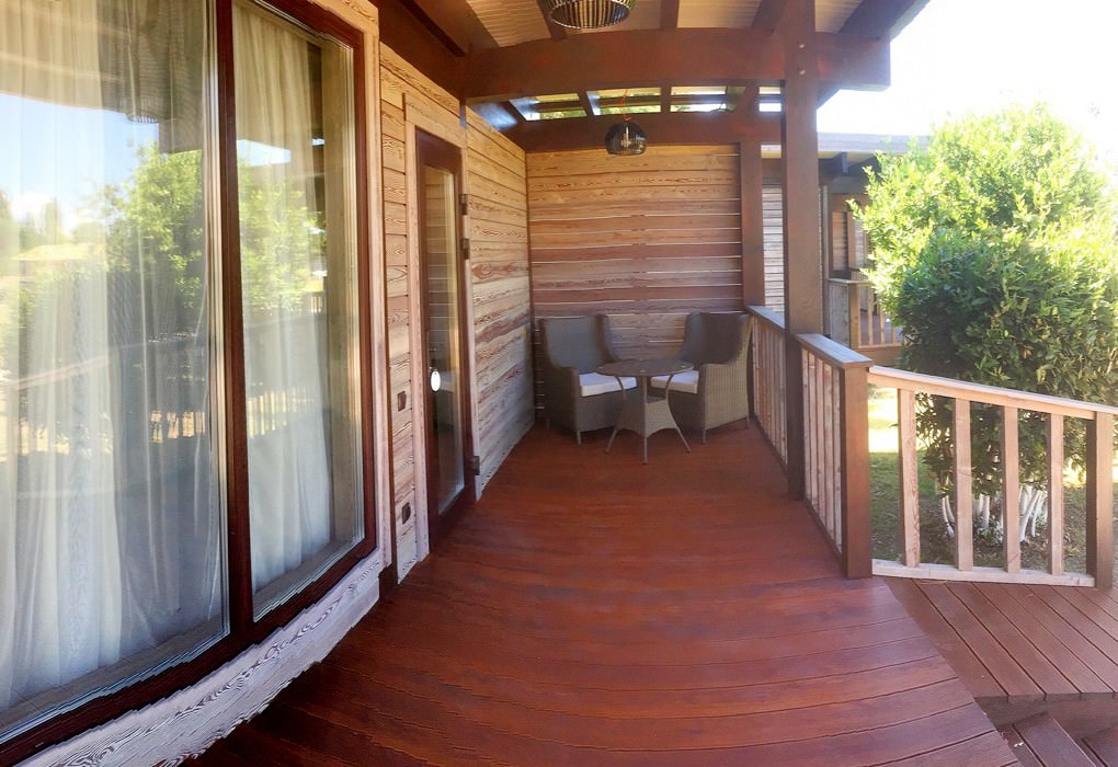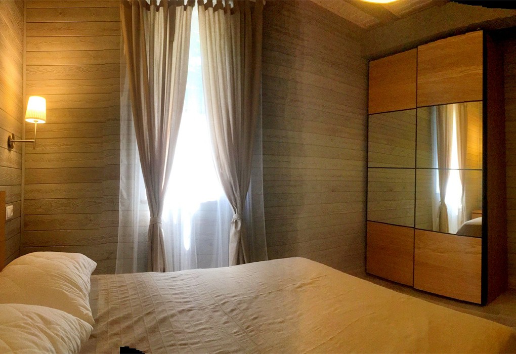 В номере: вешалка, диван раскладной, зеркало, кровать двуспальная, прикроватные тумбочки, стол, стул, шкаф, кондиционер, телевизор, холодильник