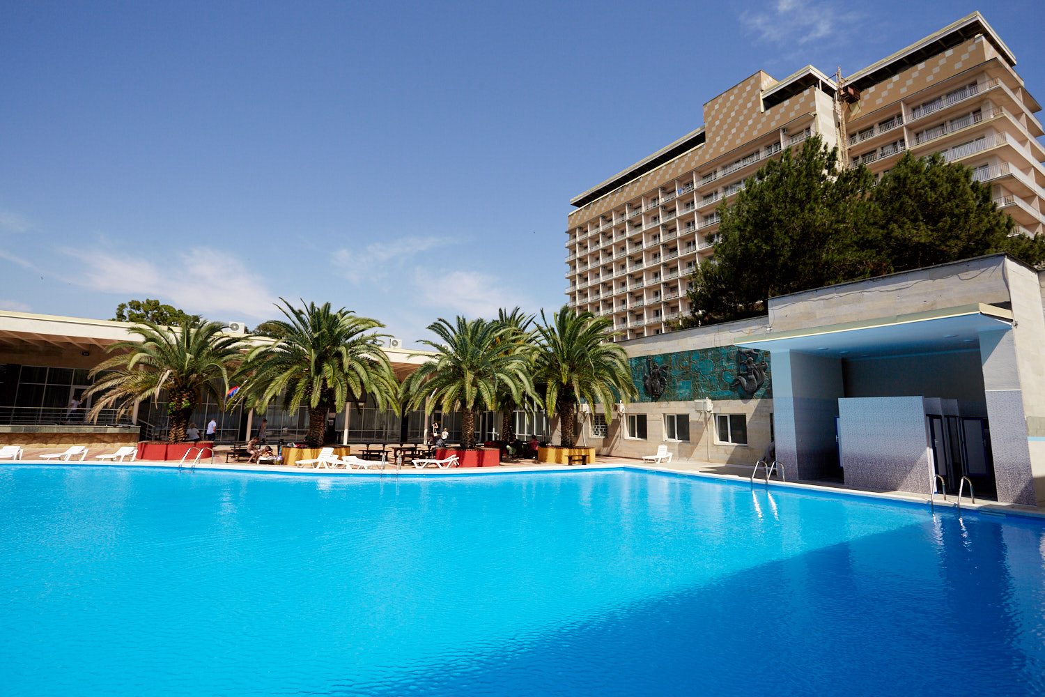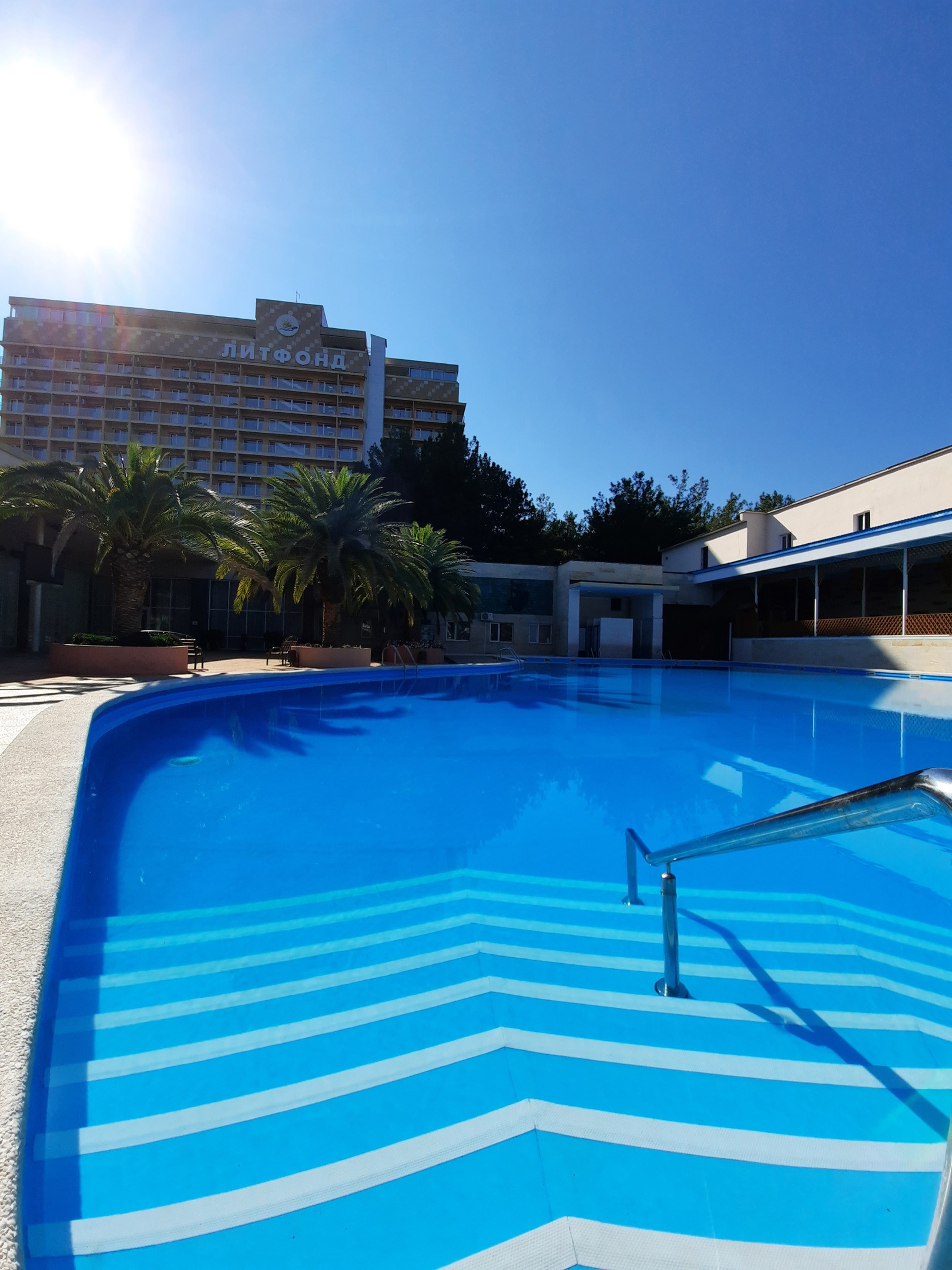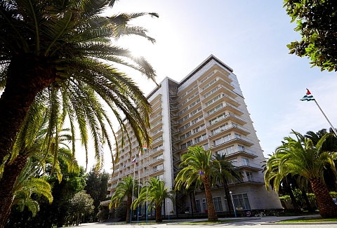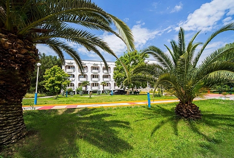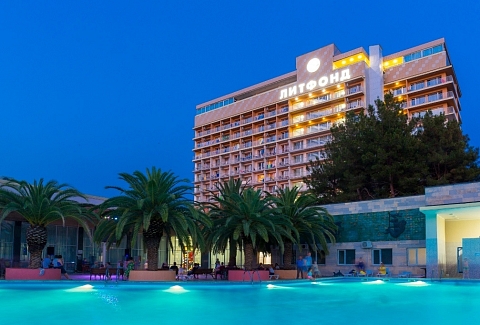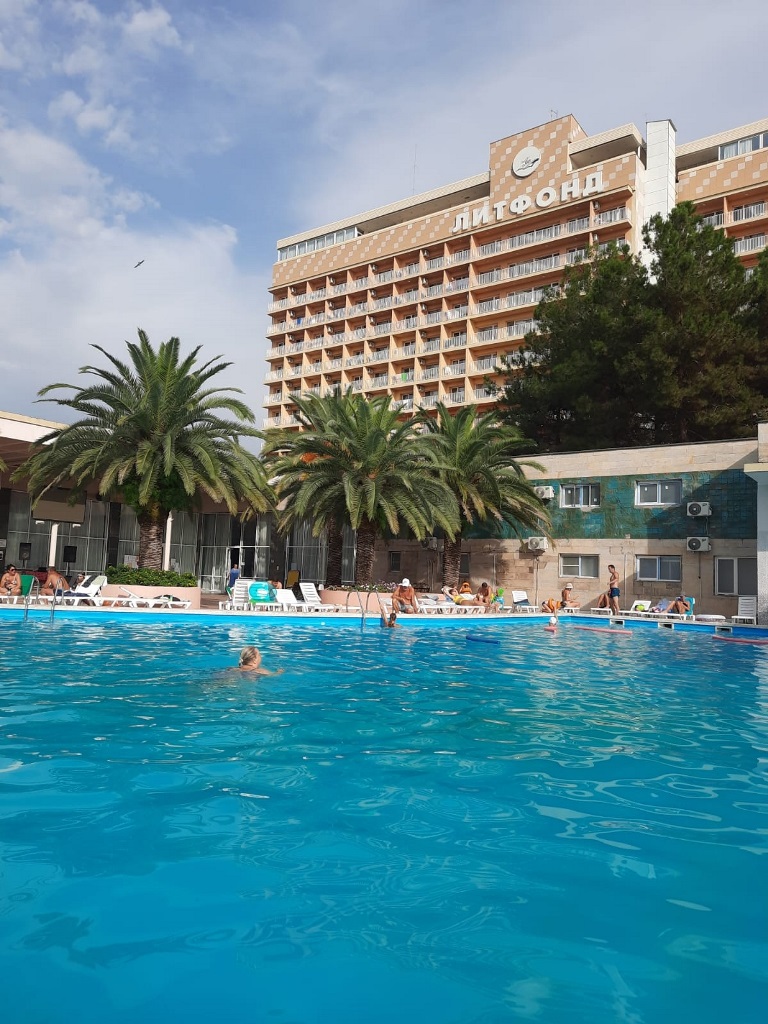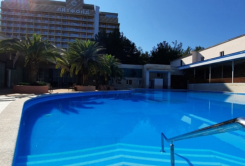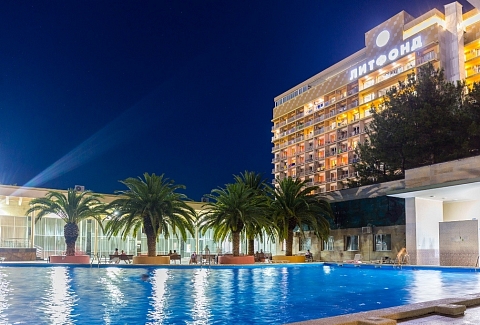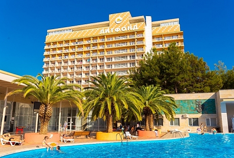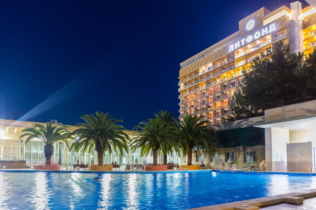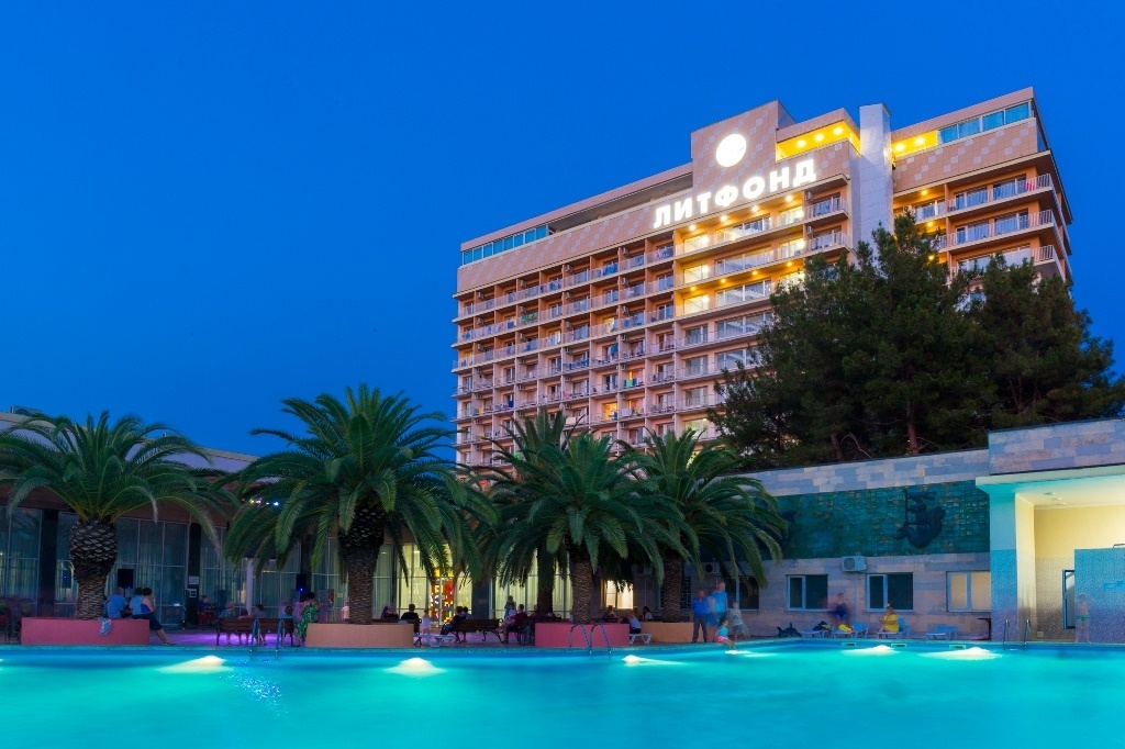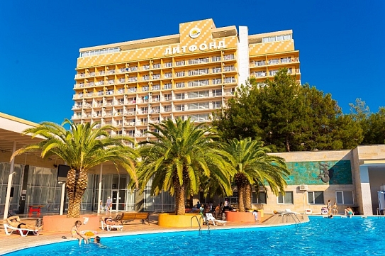 Этот пансионат – отличное место для корпоративного, молодежного и семейного отдыха с детьми. Территория пансионата привлекает субтропическими растениями и цветами. «Литфонд» представляет собой главный 12-этажный корпус бывшего «Дома творчества писателей им. Д. Гулия» с лифтом, а также малые корпуса №2 и №3, двух- и трехэтажные. Весь комплекс насчитывает 288 жилых номеров различных категорий. Каждый из них оборудован необходимым набором бытовой техники: кондиционером, холодильником, телевизором. Питание гостей осуществляется трижды в день: по системе «шведский стол» в высокий сезон и по системе «меню-заказ» в межсезонье.В распоряжении гостей пансионата – открытый подогреваемый бассейн с пресной водой, возле которого расположены удобная релакс-зона и бар. Работают сауна, косметологический и массажный кабинеты. Любителям активного отдыха предлагаются пользование тренажерным залом и спортивными площадками для игры в баскетбол, волейбол, теннис и мини-футбол и настольный теннис. Для детей оборудованы игровая площадка на свежем воздухе и детский клуб, работающий только в высокий сезон.Для гостей в высокий сезон профессионалы регулярно проводят анимационные мероприятия. В их числе: утренняя зарядка, спортивные и пляжные игры, соревнования и конкурсы, мастер-классы и концерты, вечерние шоу.Частный пляж пансионата с песчано-галечным покрытием обеспечен кабинками для переодевания, лежаками и зонтами. На пляже есть площадка для пляжного волейбола.