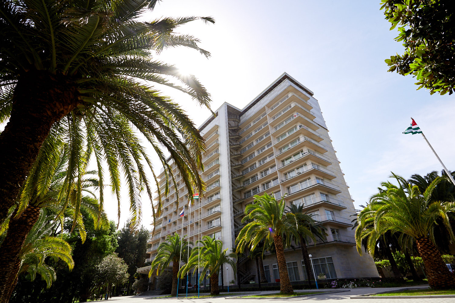 Пансионат «Литфонд» находится на въезде в город Пицунда, в 25 км от курорта Гагра. Недалеко от гостиницы расположены Патриарший собор, руины античного порта Питиунт, Центральный городской пляж, магазины, рестораны, кафе. До морского побережья не более 75 метров.