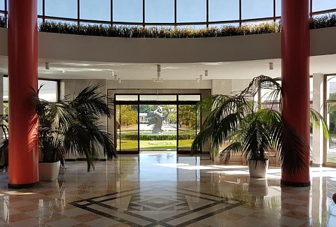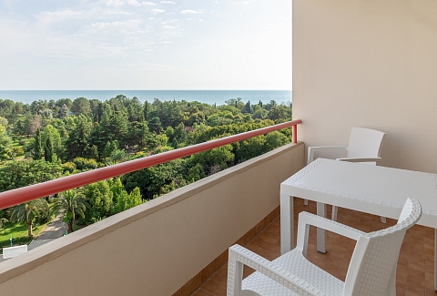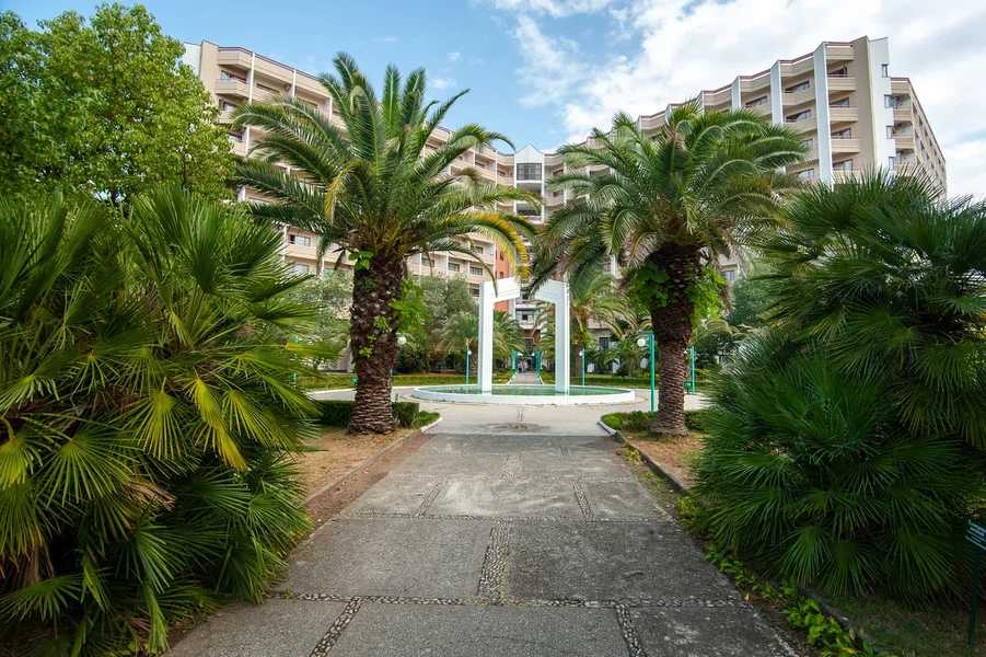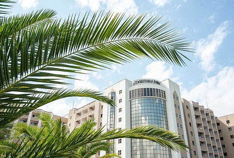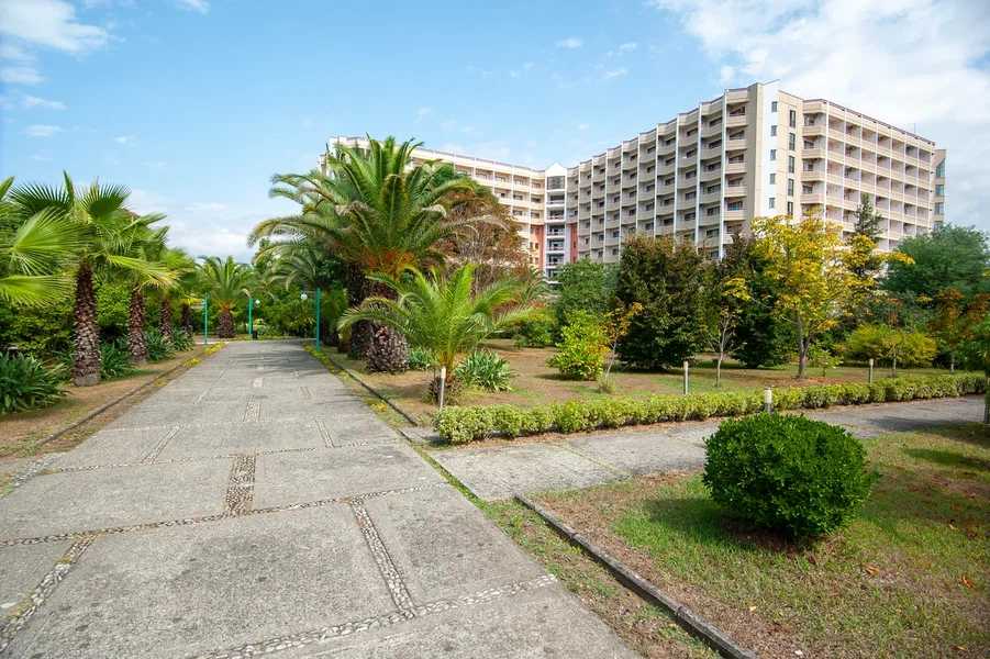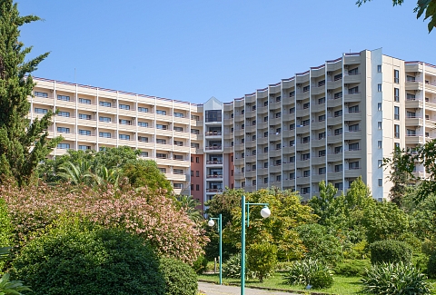 Море – в нескольких минутах ходьбы. Массивный 10-этажный корпус санатория окружает парковая зона с кипарисами, самшитами, цветами и местами для отдыха. Гостей размещают в номерах стандарт, полулюкс и люкс. Одновременно санаторий может принять до 750 отдыхающих. На последнем этаже располагаются номера студио и ресторан, из окон которого открывается панорама окрестностей. В зависимости от категории, номера оснащены санузлами с ванной или душем, сплит-системой, ТВ и холодильниками. Санаторий специализируется на диагностических медицинских услугах и комплексной терапии. Целебные природные факторы и современное оборудование здравницы способствуют улучшению здоровья пациентов. Каждый из них за может воспользоваться услугами массажиста, оздоровительными ваннами и душами, косметическими процедурами.«Самшитовая роща» – изысканный выбор вкусного и полезного питания. Гостей трижды в день кормят в столовой с тремя разными залами. В ресторане на последнем этаже готовят блюда местной и европейской кухни.Приверженцы спортивного образа жизни получат удовольствие от открытых и закрытых спортивных площадок. Открытый и крытый бассейны дополняются турецким хамамом и финской сауной, имеется салон красоты. Пляж санатория оборудован в европейском стиле, курортников ждут многочисленные водные аттракционы и услуги проката.