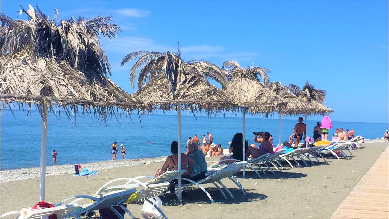 Поездом или самолетом до г. Сочи (Адлер), далее на общественном транспорте или на такси до «Казачьего рынка» (8 км от ж/д вокзала, 15 км от аэропорта), затем пройти пешком около 500 м до пограничного поста на р. Псоу до границы России и Абхазии. После самостоятельного прохождения паспортного и таможенного контроля до места отдыха можно доехать на автобусе, маршрутном такси или воспользоваться услугами частных водителей.
