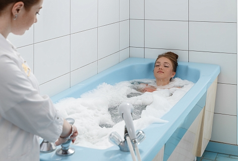 - лечение (первичный прием врача; прием лечащего врача не реже 1 раза в неделю; лечебная физкультура; щелочные ингаляции, лекарственные ингаляции, сухая углекислая ванная; бальнеотерапия; водолечение, грязелечение, аппаратная физиотерапия, светолечение; массаж классический 1 зоны (15 мин)