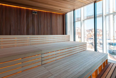 - СПА-центр зона с термальными источниками и холодной купелью; расслабляющие, эргономичные шезлонги с подогревом; хаммам с отделкой из голубого Бразильского мрамора; финская сауна с панорамой бухты Золотой рог