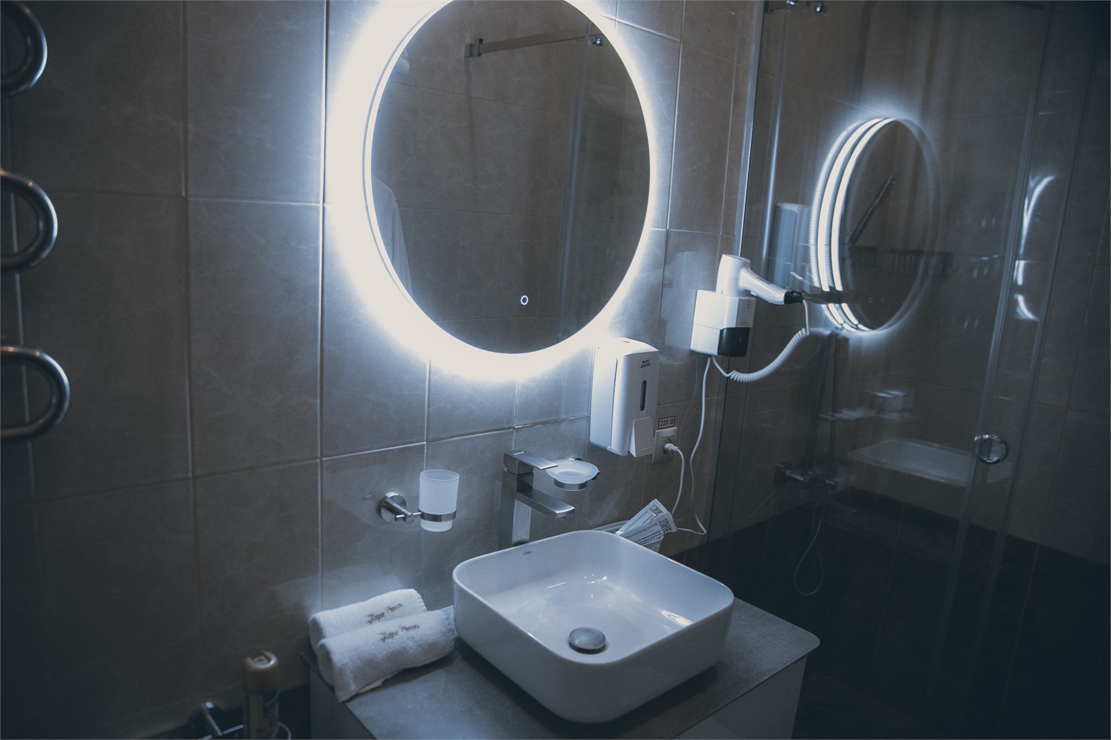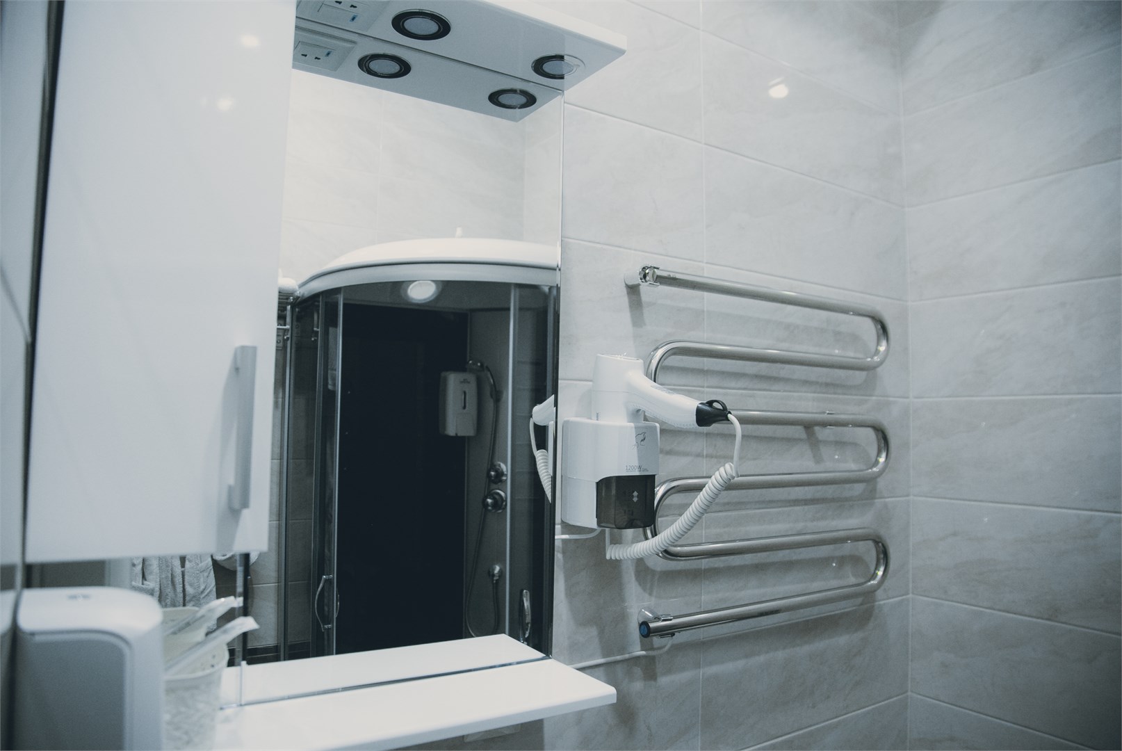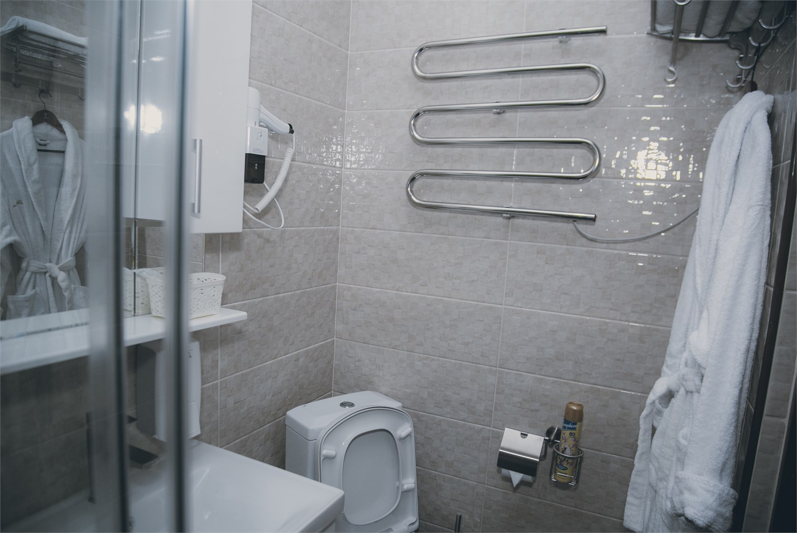 Санузел: с душевой кабиной, туалетные принадлежности, фен