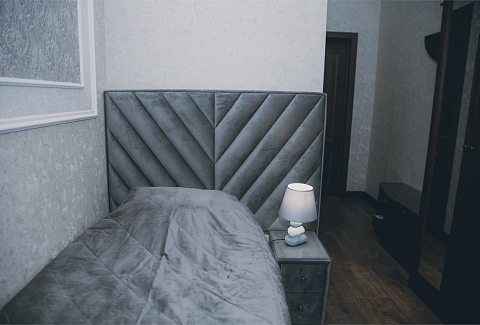 В номере: вешалка, зеркало, кровать односпальная, прикроватная тумбочка, стол, стул, шкаф, кондиционер, сейф, телевизор, холодильник