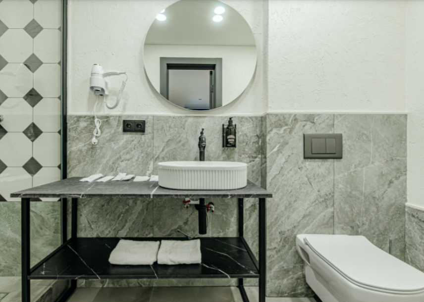 В номере: вешалка, зеркало, кровать двуспальная, прикроватные столики, стол, стул, шкаф, гладильная доска, кондиционер, мини-холодильник, сейф, телевизор, утюг, электрочайник