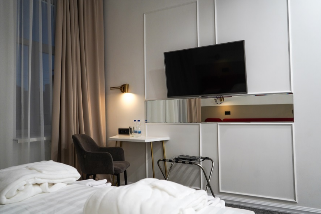 В распоряжении гостей номера с собственными ванными комнатами, телевизорами, кондиционерами, рабочими зонами и Wi-Fi. Интерьеры выдержаны в лаконичной эстетике городского отеля, создающей атмосферу уюта и приватности в центре динамичной Казани.В отеле работает ресторан с разнообразным меню, предусмотрены зоны для отдыха и делового общения. К услугам гостей круглосуточная стойка регистрации, камера хранения багажа и парковочные места.