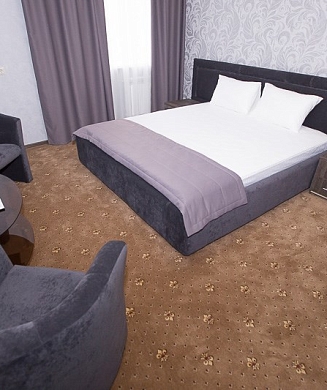 В номере: вешалка, зеркало, кровать двуспальная, прикроватные столики, стол, стул, шкаф, гладильная доска, кондиционер, мини-холодильник, сейф, телевизор, телефон, утюг, электрочайник