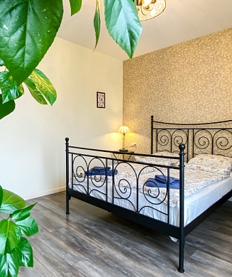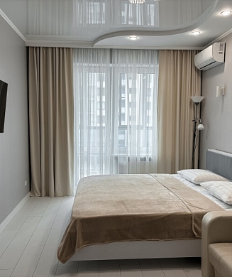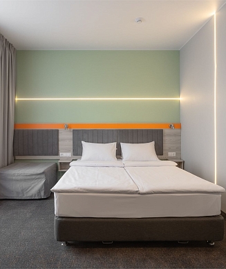 В номере: вешалка, зеркало, кровать двуспальная, стул, шкаф, гладильная доска, кондиционер, мини-холодильник, сейф, телевизор, утюг, электрочайник