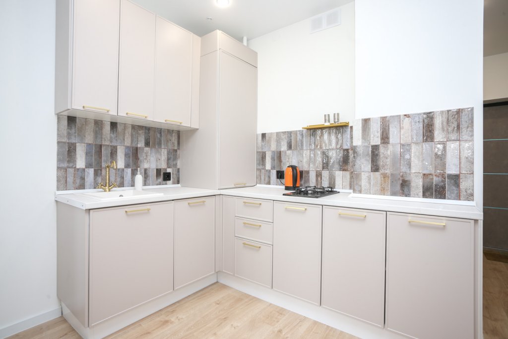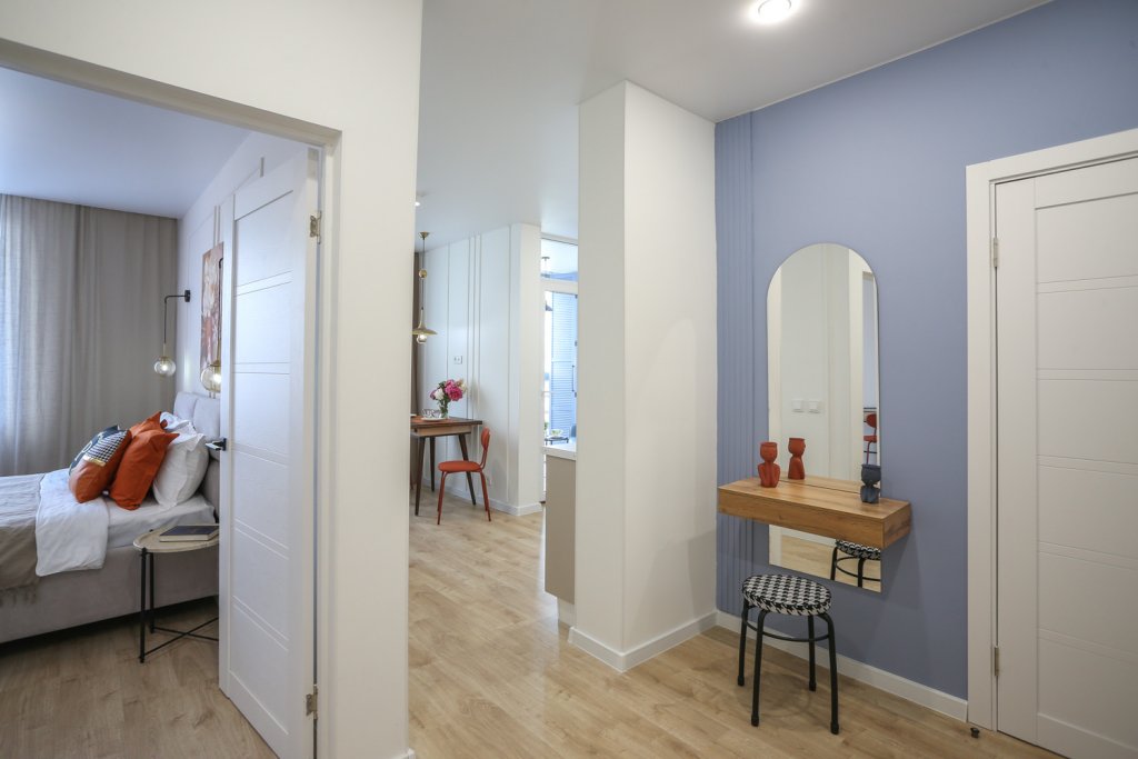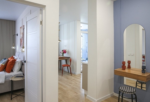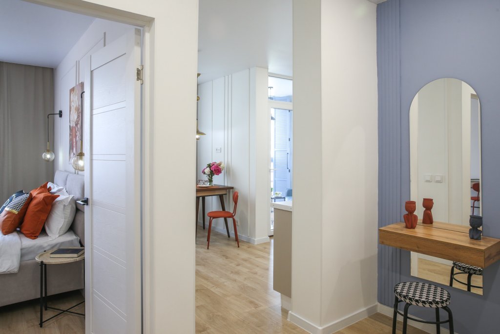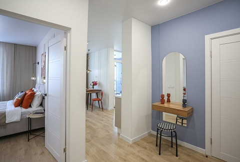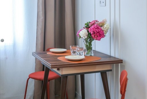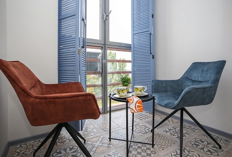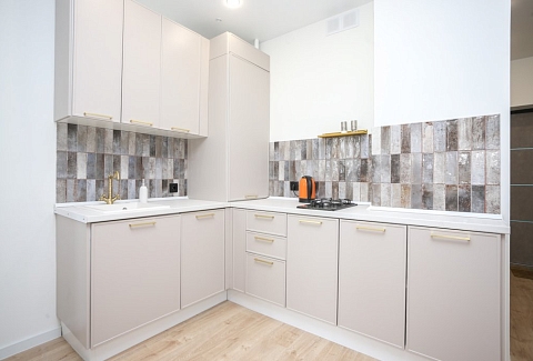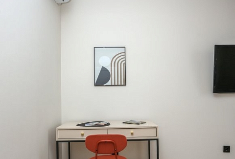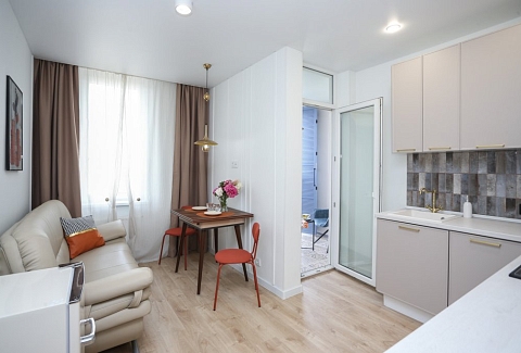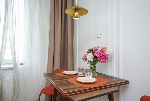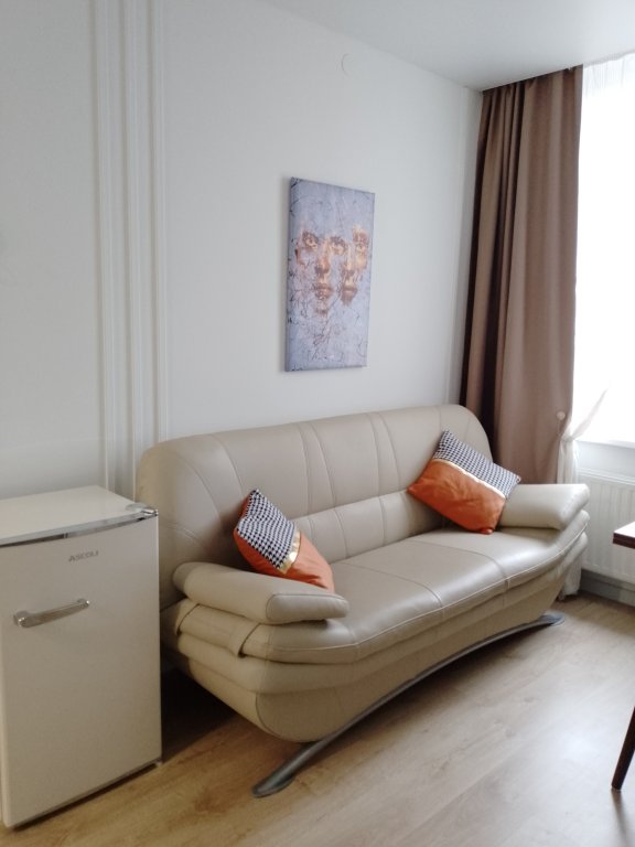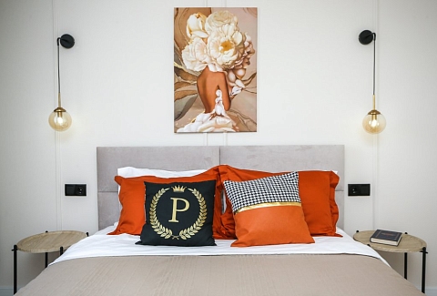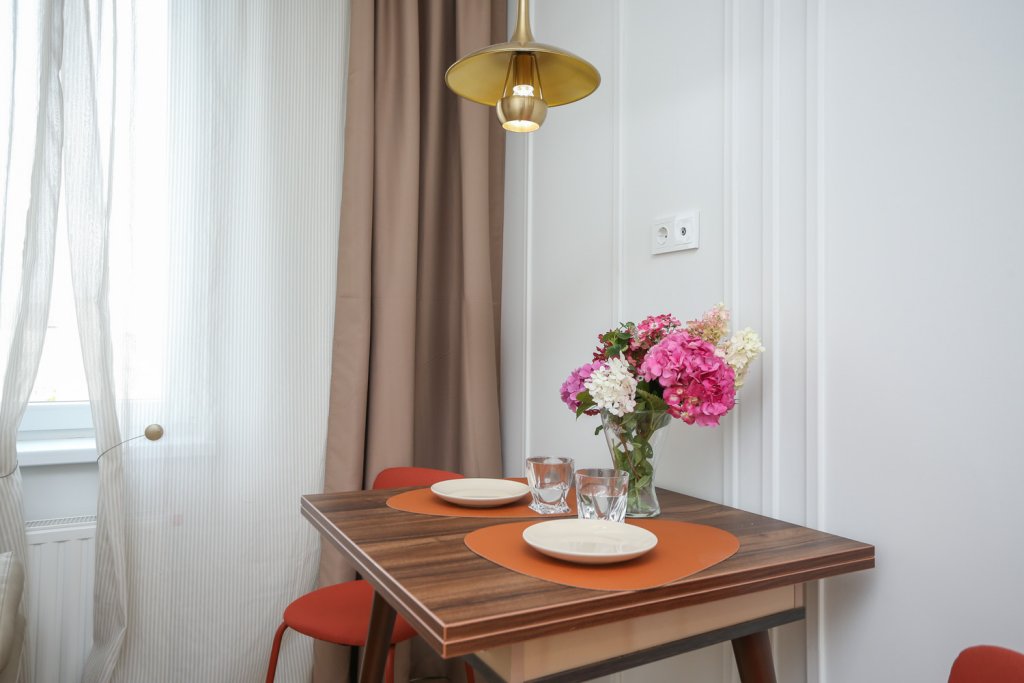 К услугам гостей светлый уютный номер с кухней, спальней и ванной комнатой. Апартаменты укомплектованы необходимой мебелью и техникой: есть двуспальная кровать, утюг, фен, кондиционер, телевизор-ЖК, стиральная и посудомоечная машины, плита, микроволновая печь, холодильник. В ванной комнате – для гостей подготовлены косметические принадлежности. Среди услуг – безлимитный интернет, парковка и детская площадка возле здания.