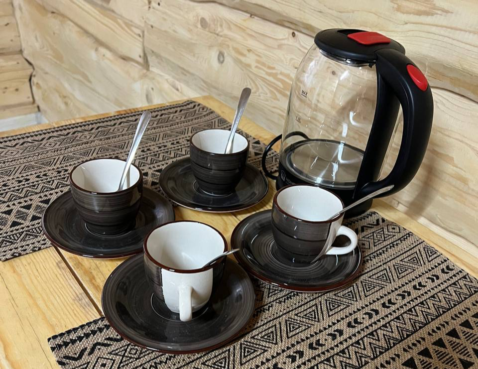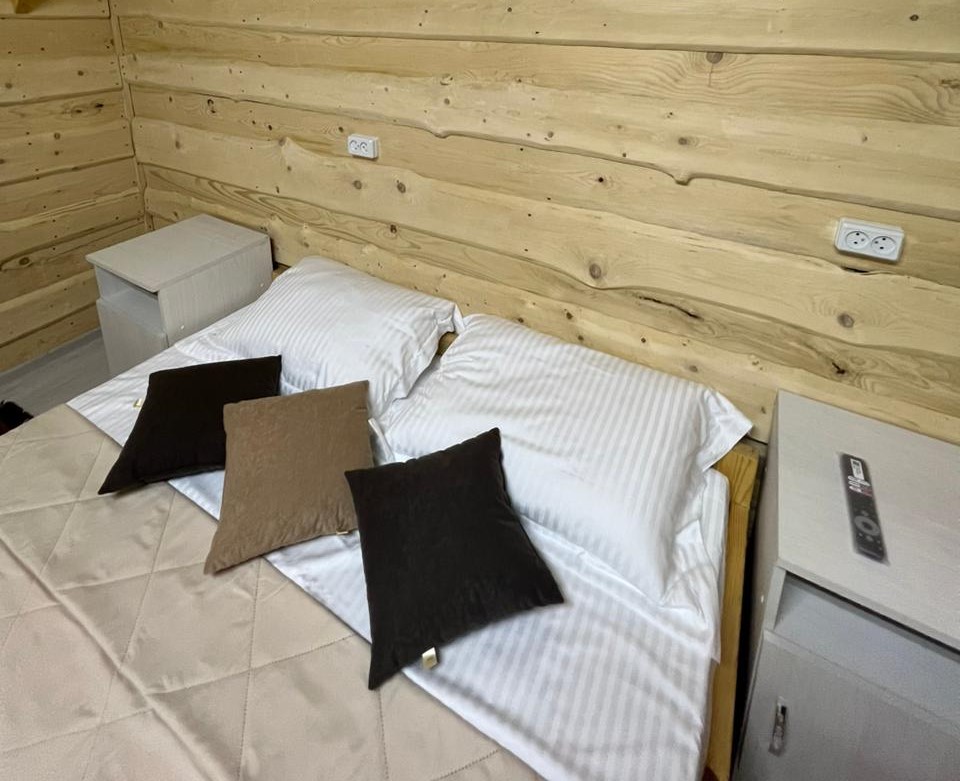 В номере: кровать двуспальная, прикроватные тумбочки, телевизор, теплый пол, чайный набор посуды, электрочайник