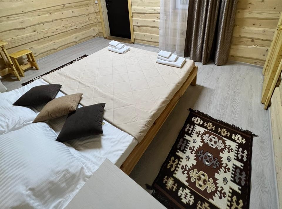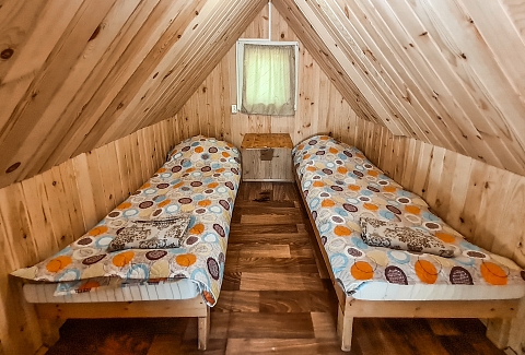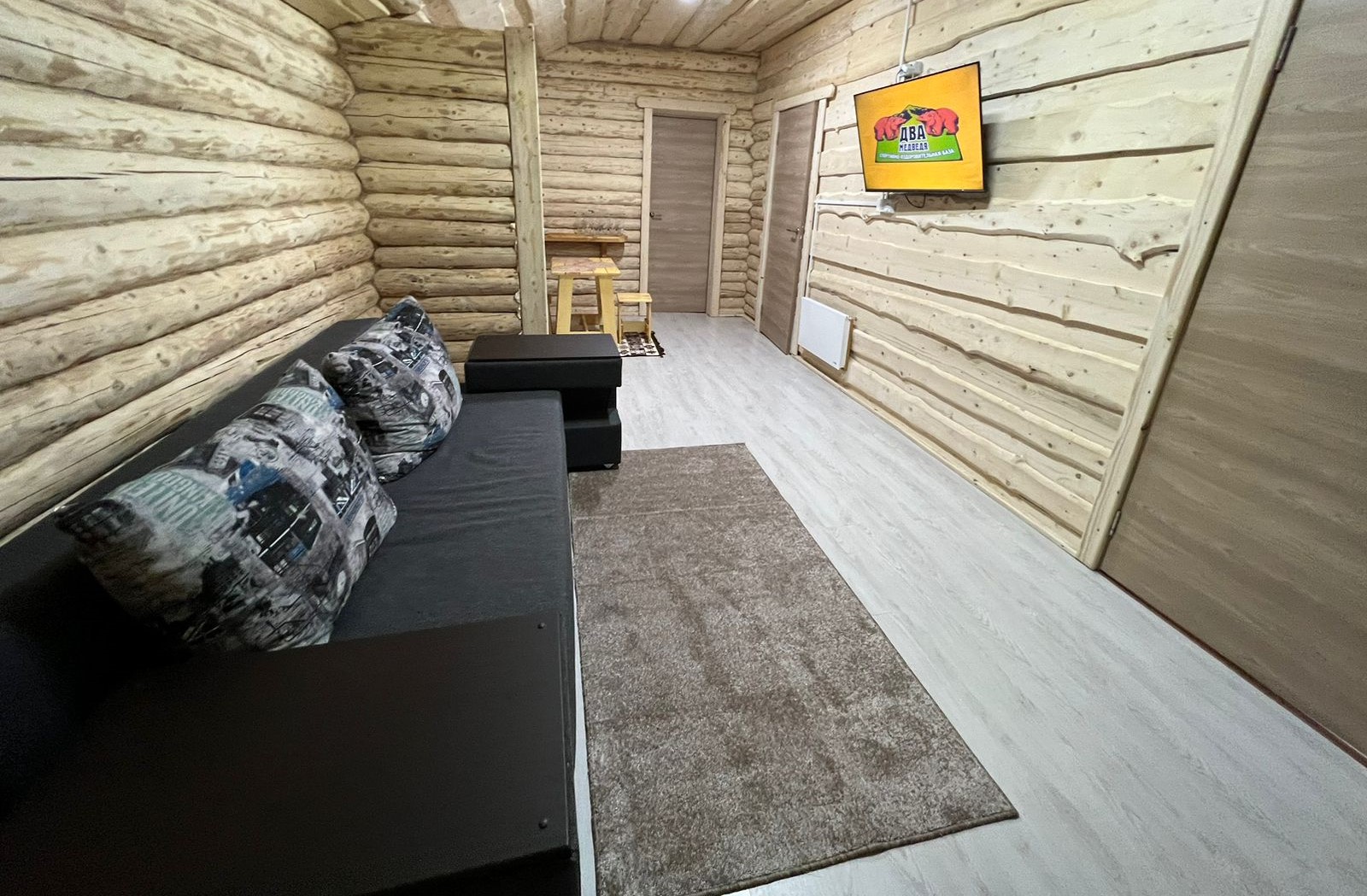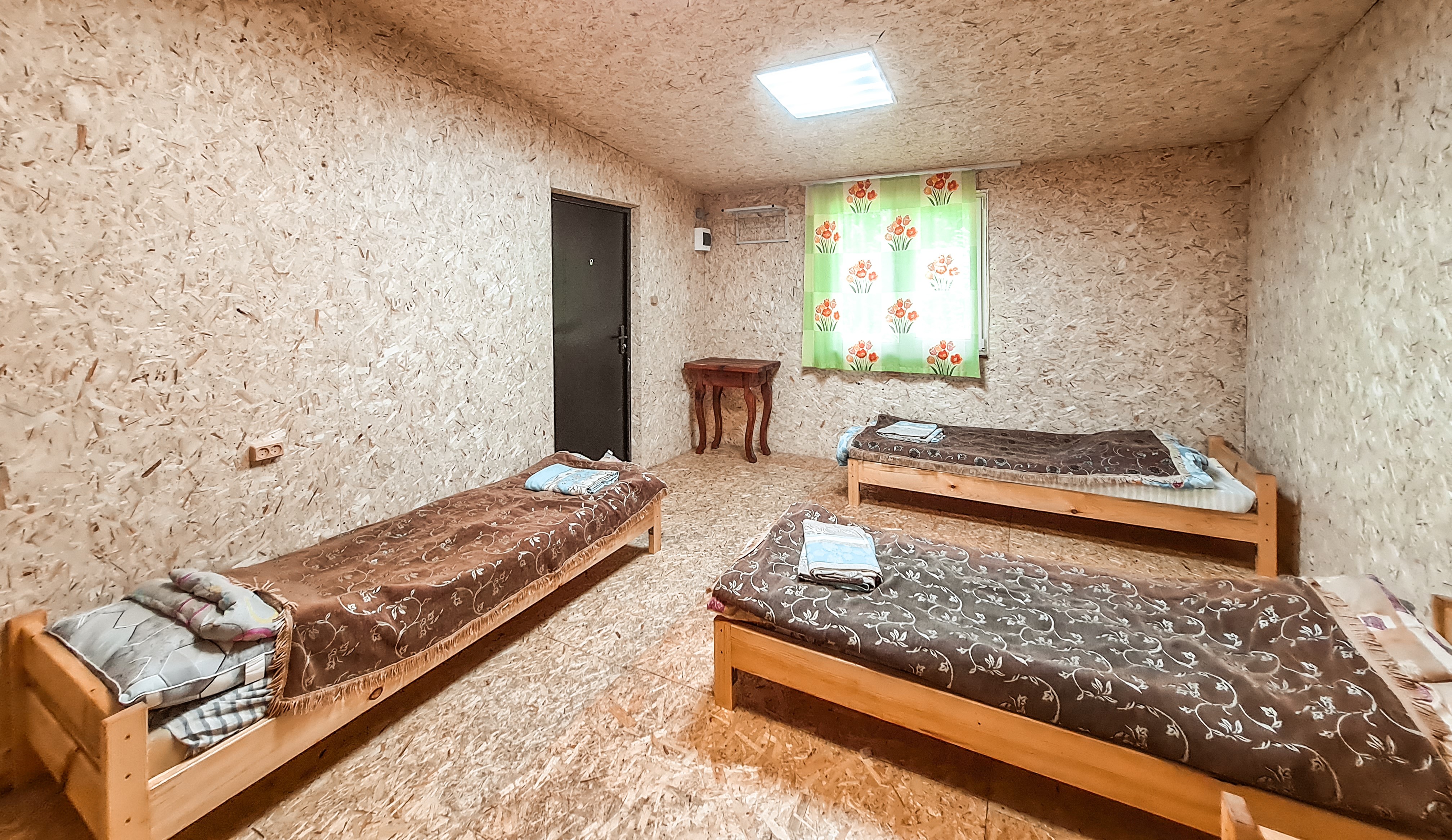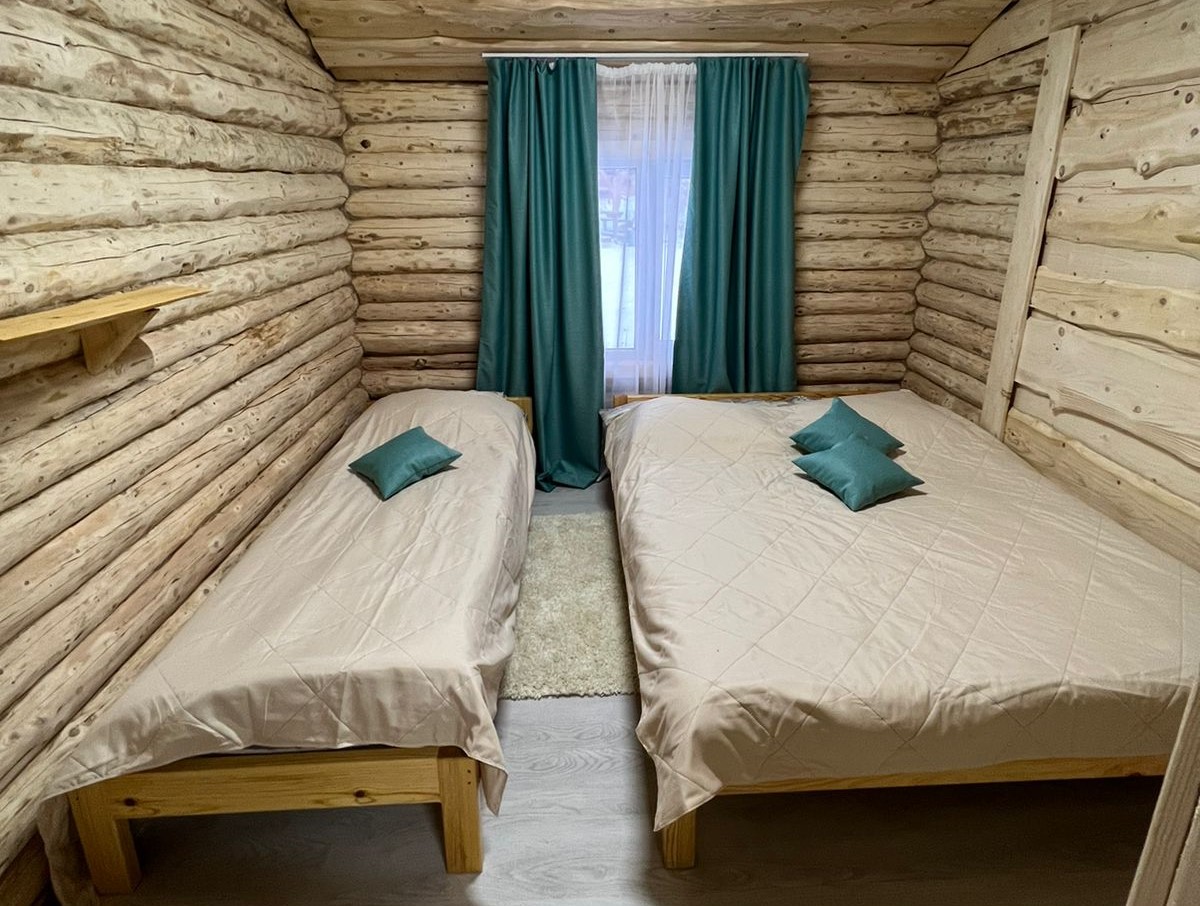 В номере: вешалка, диван раскладной, кровати односпальные, кровать двуспальная, обувная полка, стол, тумба, микроволновая печь, набор посуды, телевизор, теплый пол, холодильник, электрочайник
