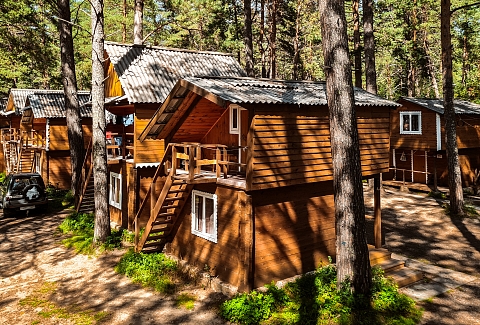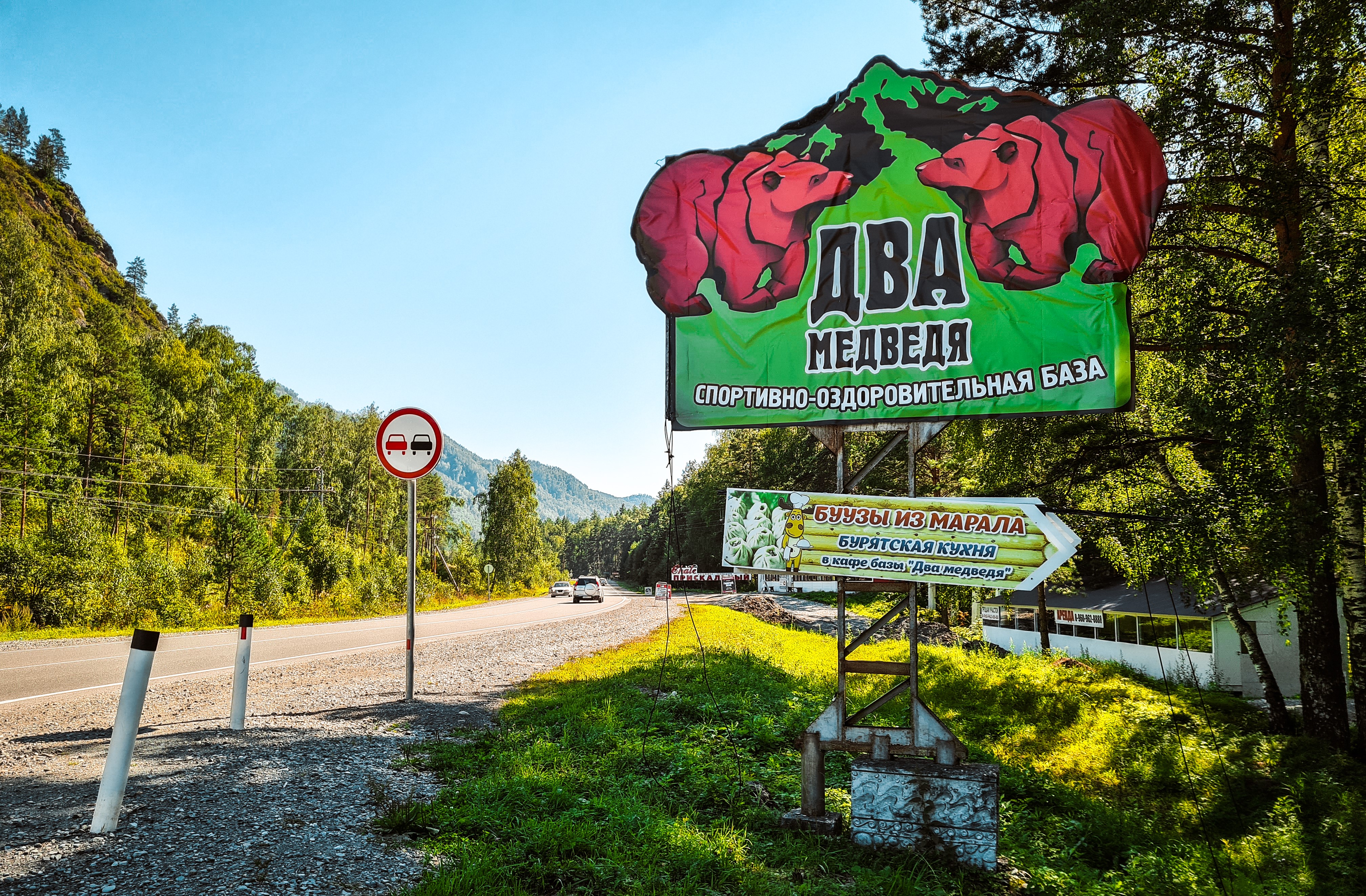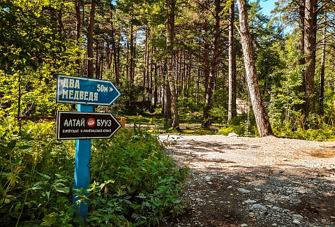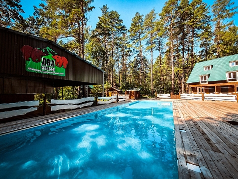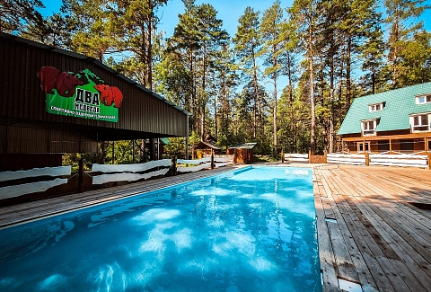 Спортивно-оздоровительная база «Два медведя» раскинулась в живописном уголке Республики Алтай на берегу реки Катуни, неподалеку от всесезонного курорта Манжерок. База отдыха стоит рядом с Чуйским трактом, всего в 20 минутах езды от Горно-Алтайска. Рядом находятся популярные туристические достопримечательности - Тавдинские пещеры, Камышинский водопад, ОЭЗ «Бирюзовая Катунь».