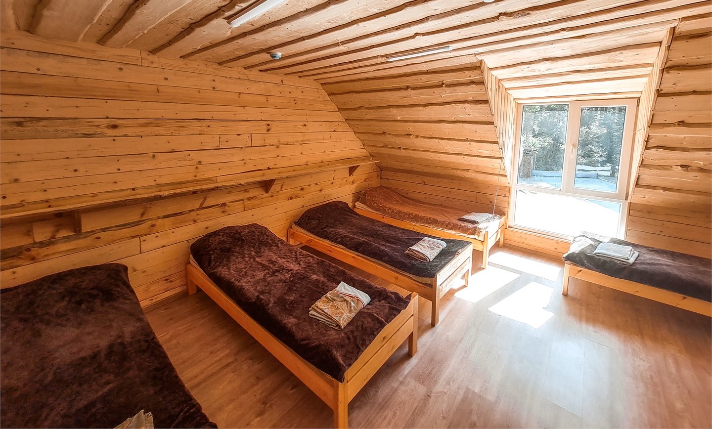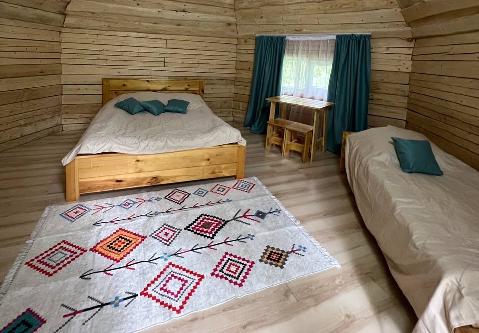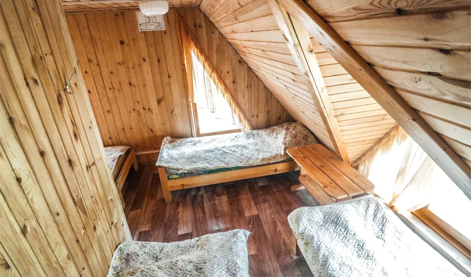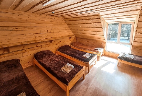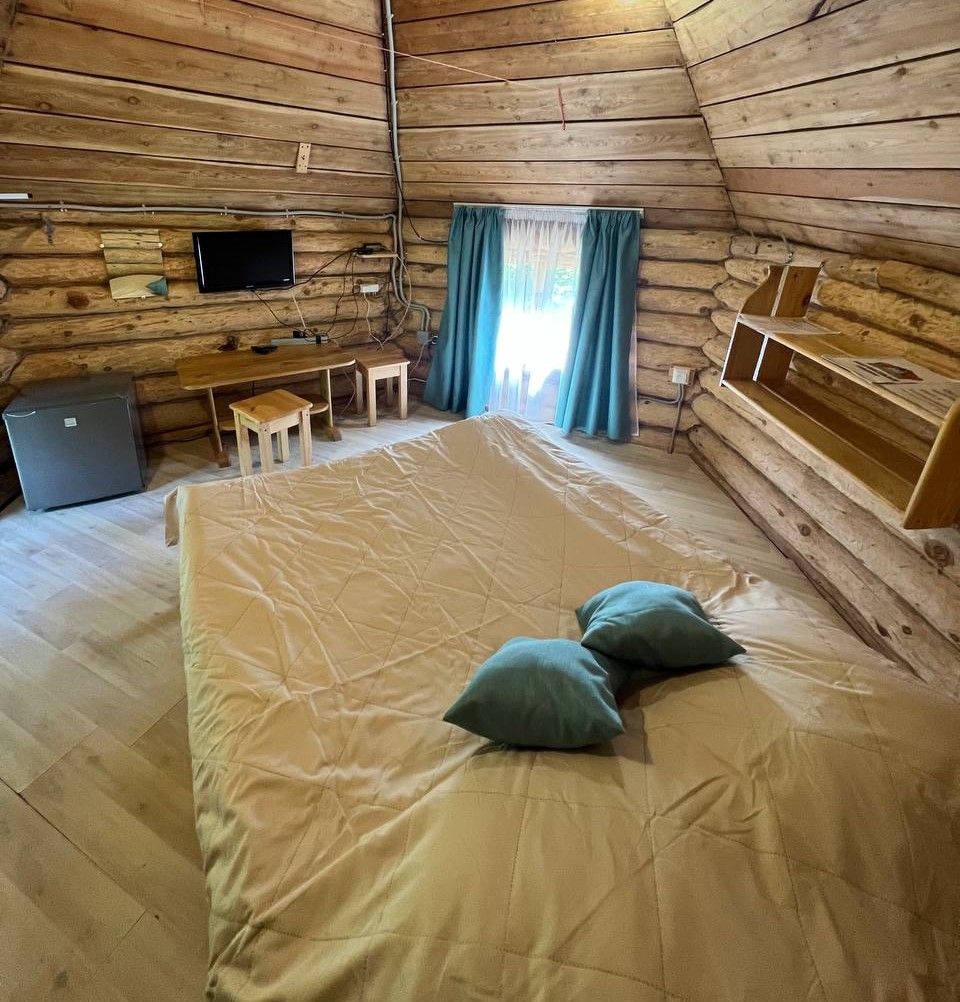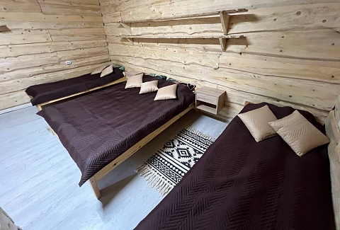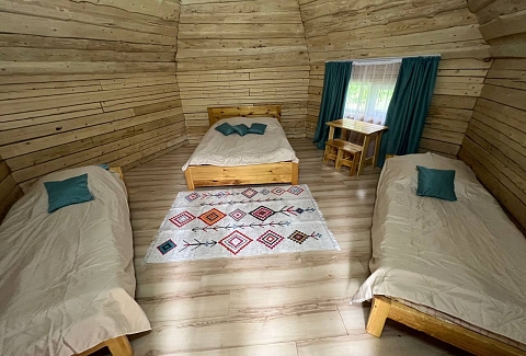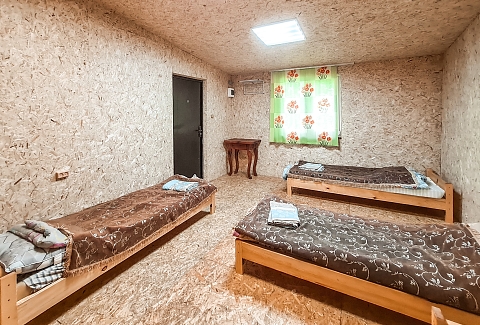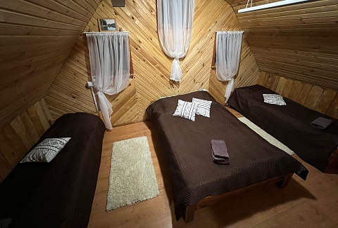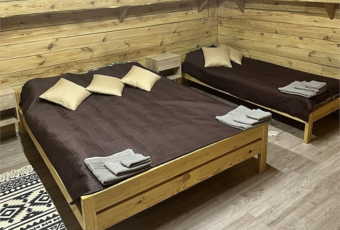 В номере: вешалка, диван раскладной, кровати односпальные, кровать двуспальная, стол, стулья, микроволновая печь, набор посуды, телевизор, холодильник, электрочайник