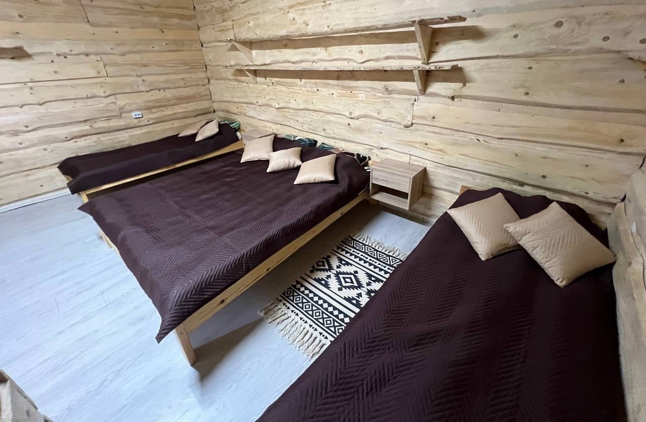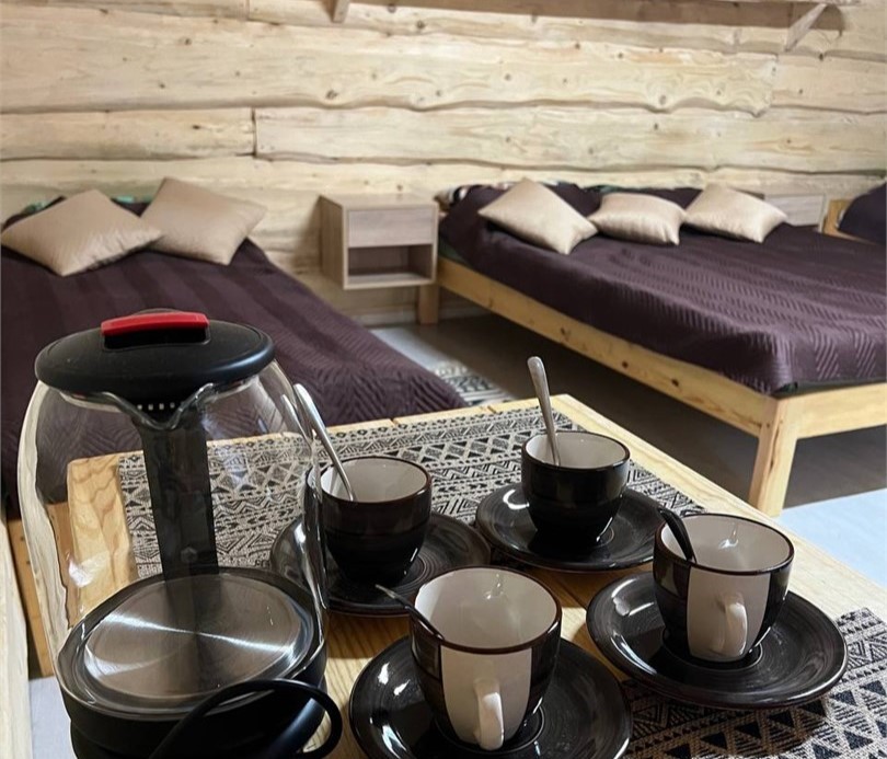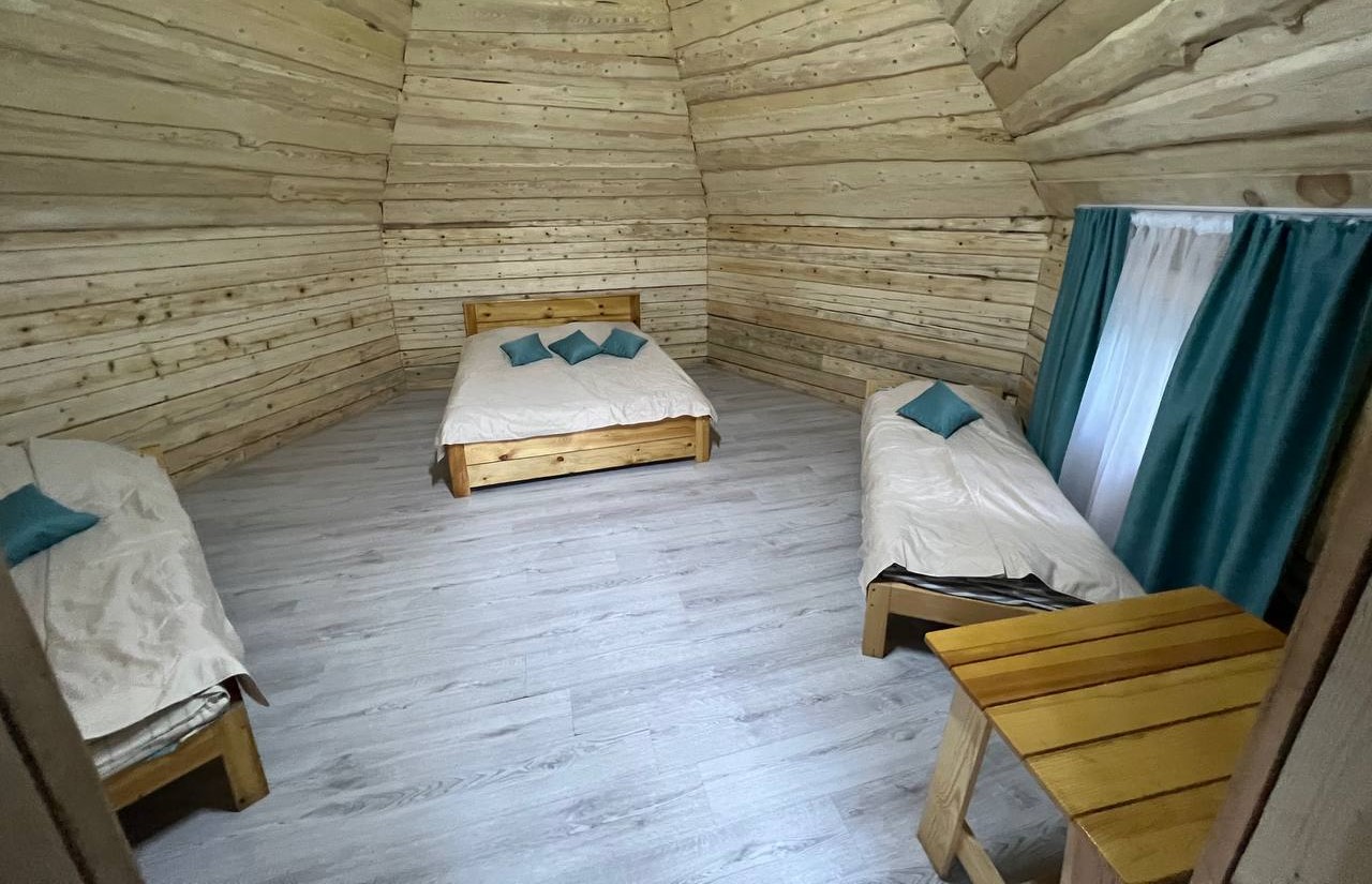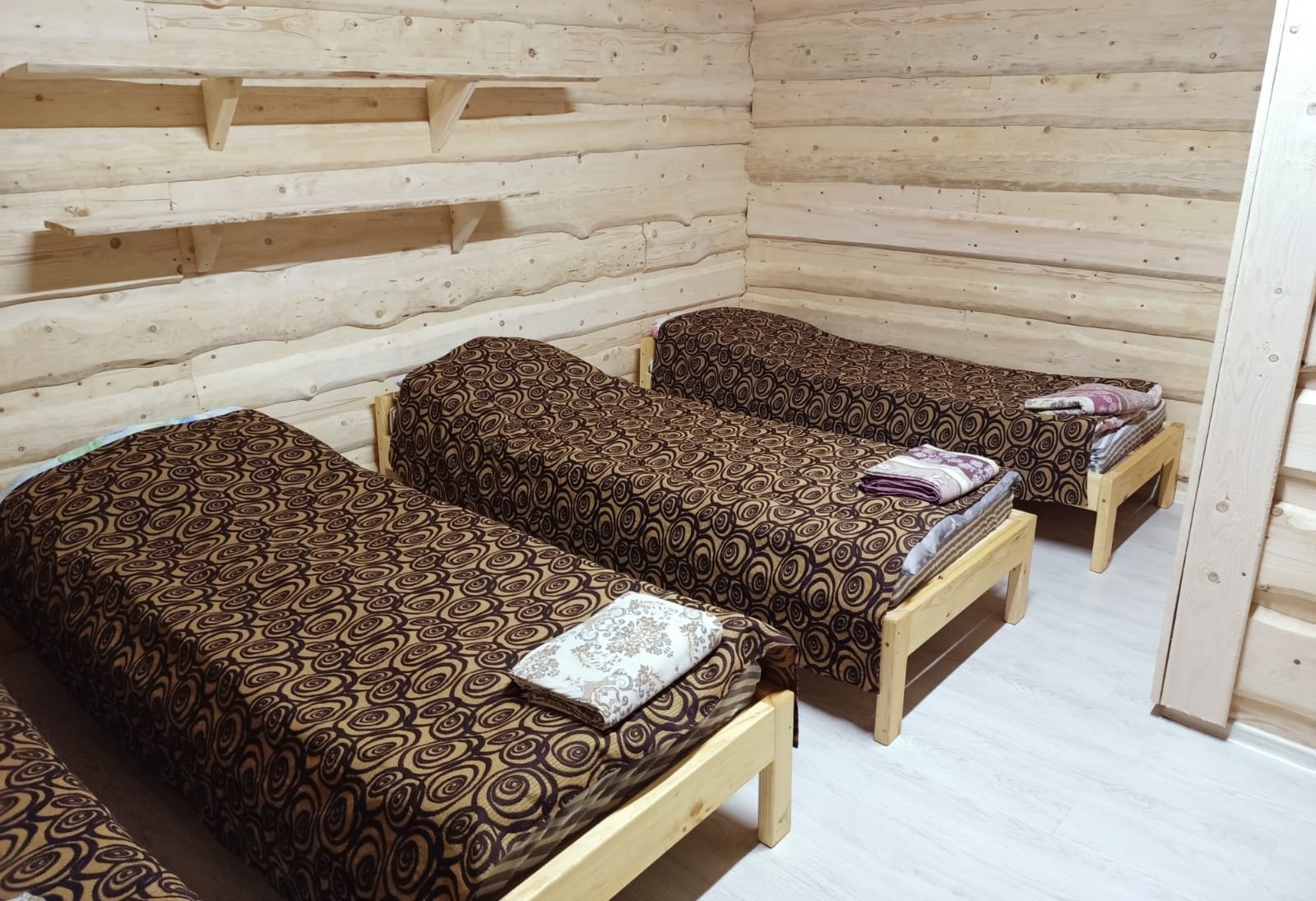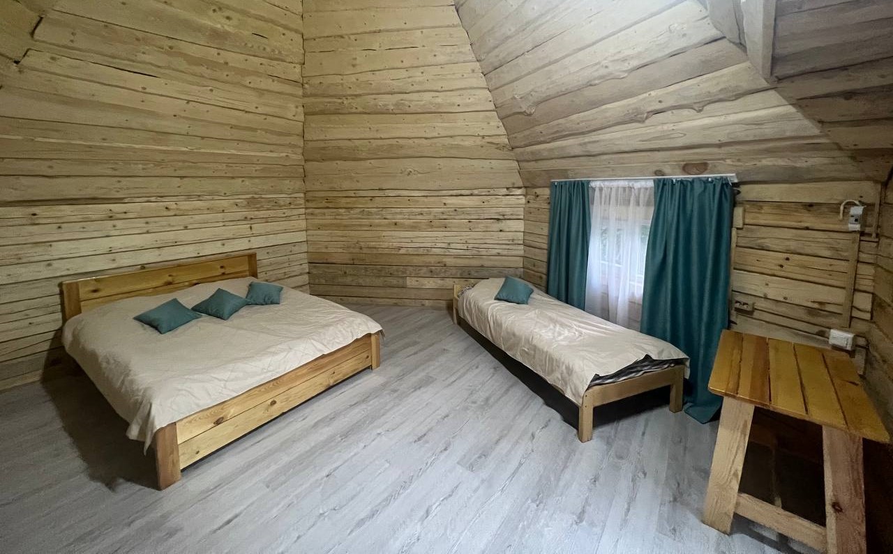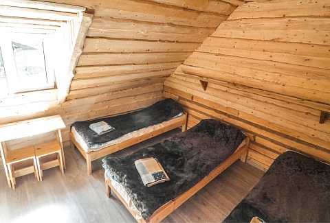 В номере: вешалка, диван раскладной, кровати односпальные, кровать двуспальная, стол, стулья, микроволновая печь, набор посуды, телевизор, холодильник, электрочайник