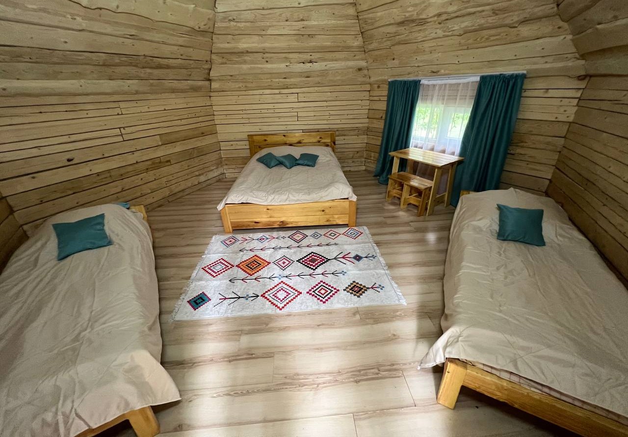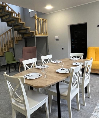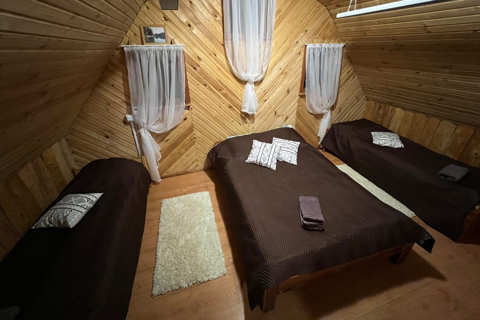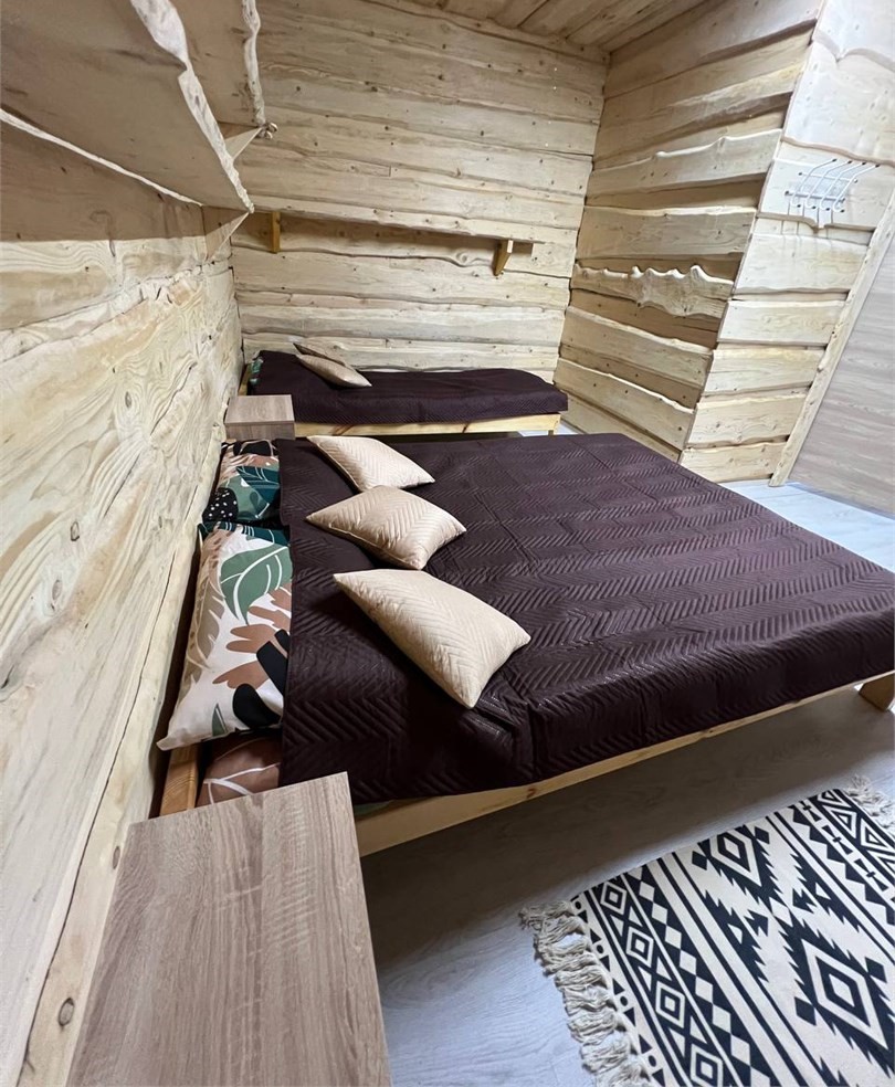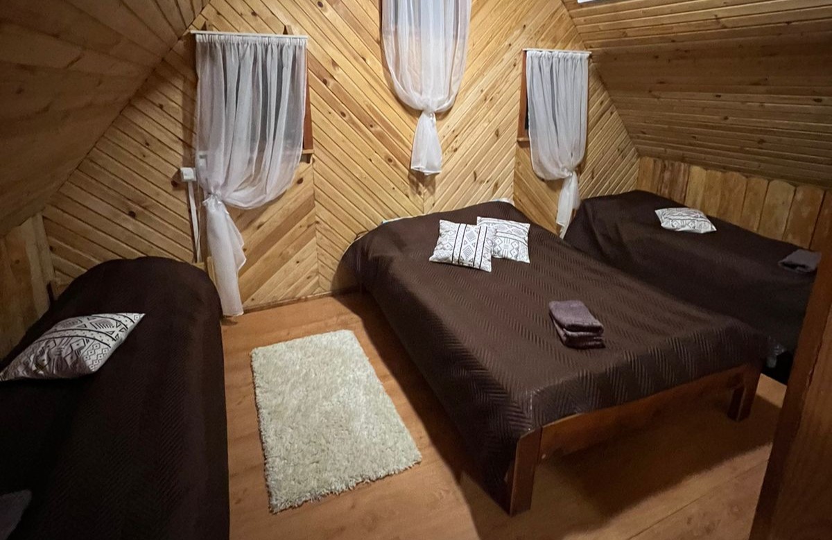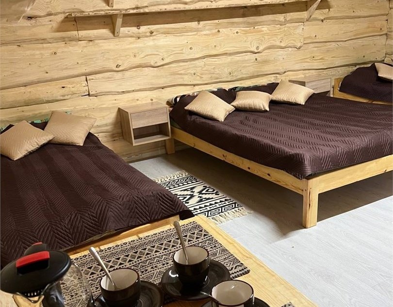 В номере: вешалка, диван раскладной, кровати односпальные, кровать двуспальная, стол, стулья, микроволновая печь, набор посуды, телевизор, холодильник, электрочайник