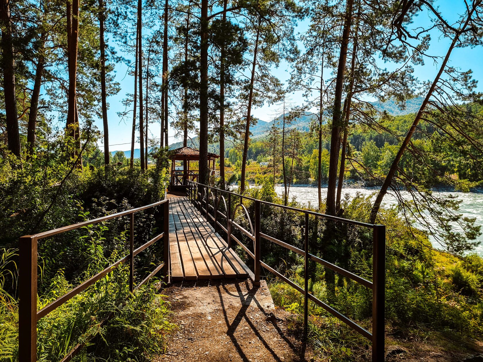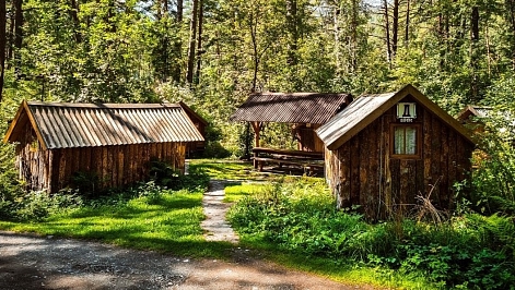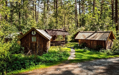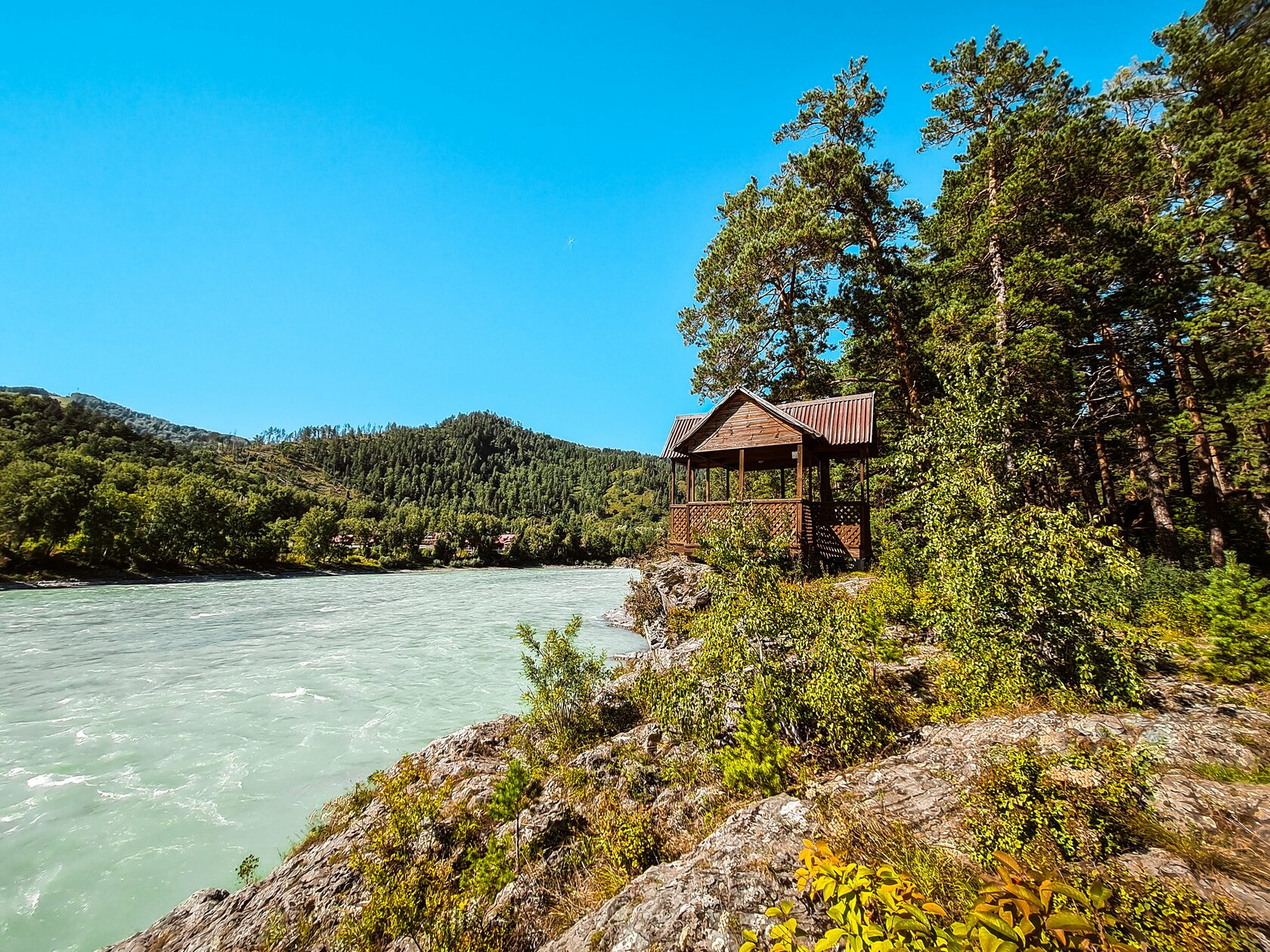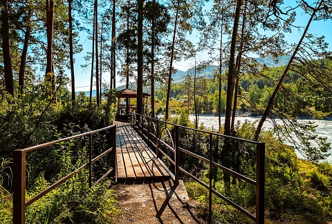 Поездом до ж/д вокзала г. Бийска, далее на такси или с автовокзала междугородним автобусом (в направлении с. Чемал) до остановки по требованию, не доезжая моста «Бирюзовая Катунь».