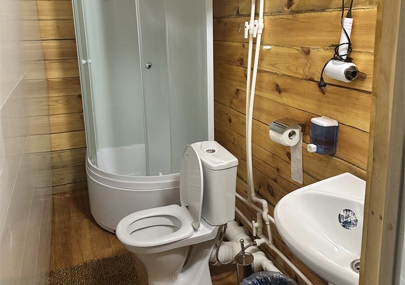 Санузел: с душевой кабиной, тапочки, туалетные принадлежности